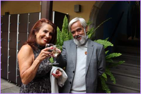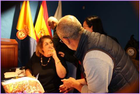 Una emotiva sorpresa le aguarda a la poeta con el acento íntimo del saludo desde la distancia que acorta espacios en estos momentos, Isaac, hijo de Lola May, desde Dublín, envía la más cariñosa felicitación a su madre, dedicándole una décima espinela, emoción que ante este detalle que acorta distancias el público respondió con un unánime aplauso ante este bello gesto de un hijo para su madre.