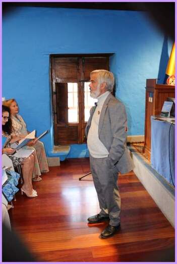 Pasado este primer contacto en el salón de actos de la Casa Museo se inicia el acto de presentación de esta nueva cita con un libro, en esta semana que transcurre con diversos actos, la Feria del Libro de Telde, promovida por la Concejalía de Cultura del Ayuntamiento de Telde, y Gestel. Abre la presentación el conocido actor, declamador, José Antonio González, que ya tuvimos la oportunidad de seguir su voz, interpretación y pasos en el recorrido literario homenaje a la Escuela Lírica de Telde, con motivo del Día de las Bibliotecas en octubre de 2022, organizado por la Concejalía de Cultura en la Biblioteca Municipal Saulo Torón del Parque Arnao.