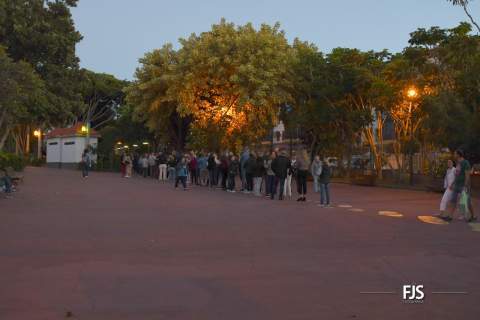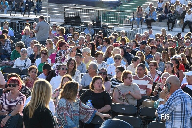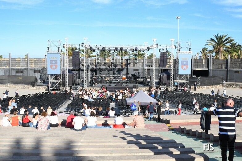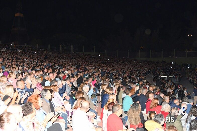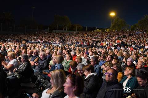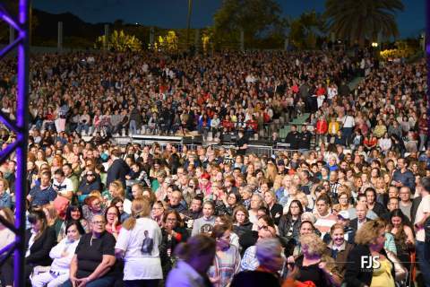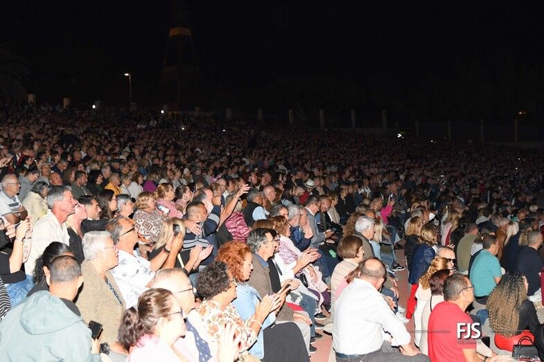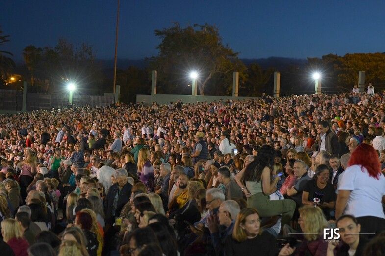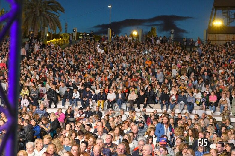 El artista José Vélez llenó en el auditorio del parque San Juan. Las 3.000 entradas gratuitas que ofreció por internet causaron la primera fiebre, que continuó con largas colas en el teatro Juan Ramón Jiménez para retirar las invitaciones. Pero fue el sábado cuando los más de 10.000 asistentes aplaudieron con cariño durante la actuación de más de horas y medias que ofreció el teldense.