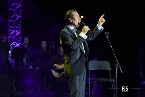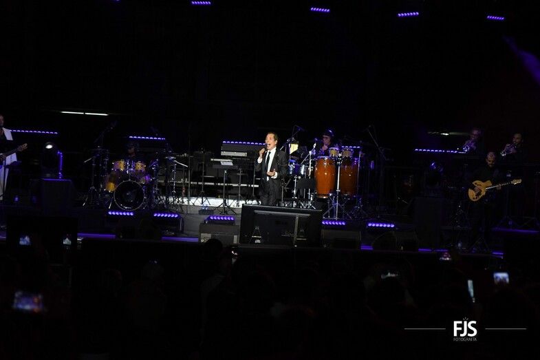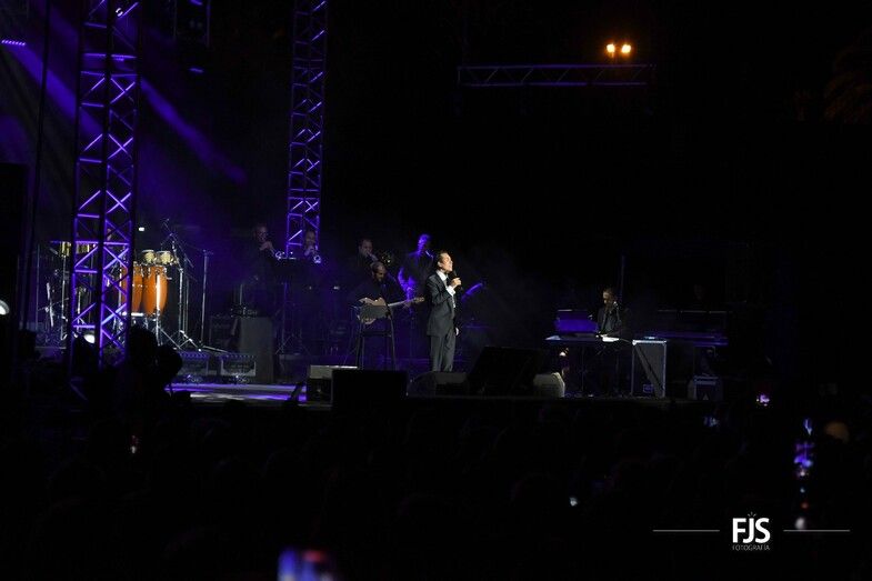 El canarito cantó un repertorio que emocionó a los asistentes y selló un emotivo reencuentro con su tierra. Interpretó dos temas (A mi manera y Bailemos un vals) con el acompañamiento de la Banda Muncipal de Música de Telde, un bello gesto que el entregado público supo agradecer.