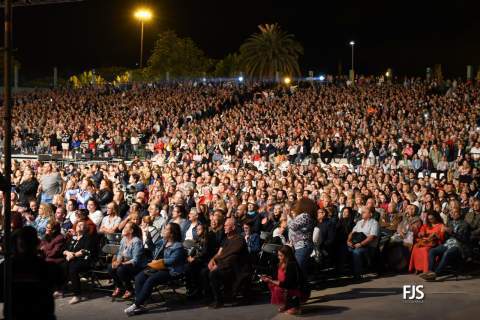Durante más de dos horas, Vélez ofreció lo mejor de sí para contentar a un público entregado que llenaba el recinto del parque urbano de San Juan más de una hora antes del inicio del recital organizado por la Concejalía de Cultura que tutela el edil Juan Martel y la empresa pública Gestel.