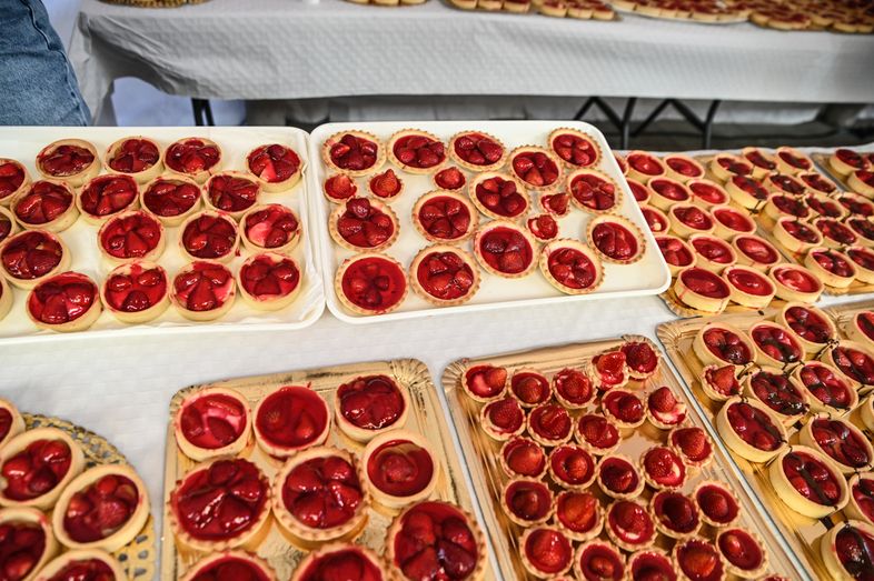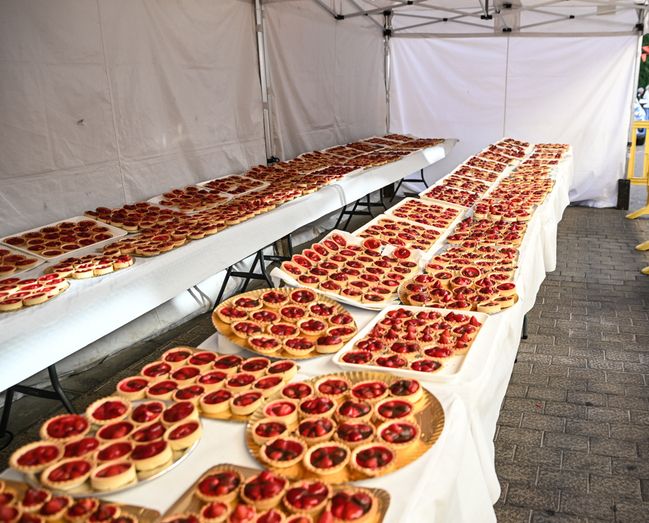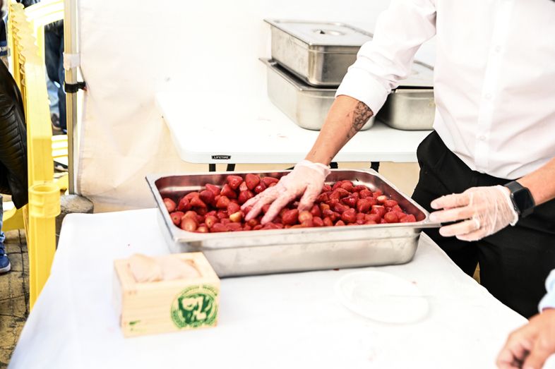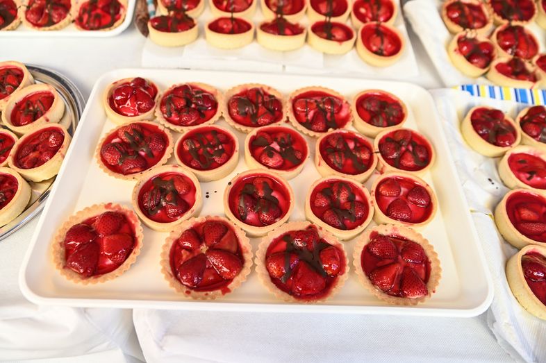 Mojitos de fresa, crepes, pan de fresa, helados, dulces, licor de fresas, tartaletas de fresa con chocolate, son solo algunos de los productos que han podido saborearse hoy en la localidad. Una actividad gastronómica donde la pastelería La Dulce Tentación de Telde realizó una demostración de una tarta elaborada con fresa local. Por su parte, el Mejor Chef de Canarias, Richard Díaz, del restaurante Sorondongo, ha realizado una demostración en vivo de cómo preparar un salpicón de fresa y caballa, una ensalada de fresa, romero y menta, y ha terminado con una carrillera de almendra y fresa. Unos platos que podían acompañarse con los daiquiris tradicionales con fresa de Valsequillo o el cóctel de ron Arehucas selección familiar con fresa de Valsequillo que elaboraron la Asociación de Barmans de Gran Canaria. El cocinero Daniel Castro le puso el broche de oro a las demostraciones de cocina con la elaboración de una mantequilla de fresas, un tártar de gambas y fresas y un buñuelo de queso con alioli también de fresa.