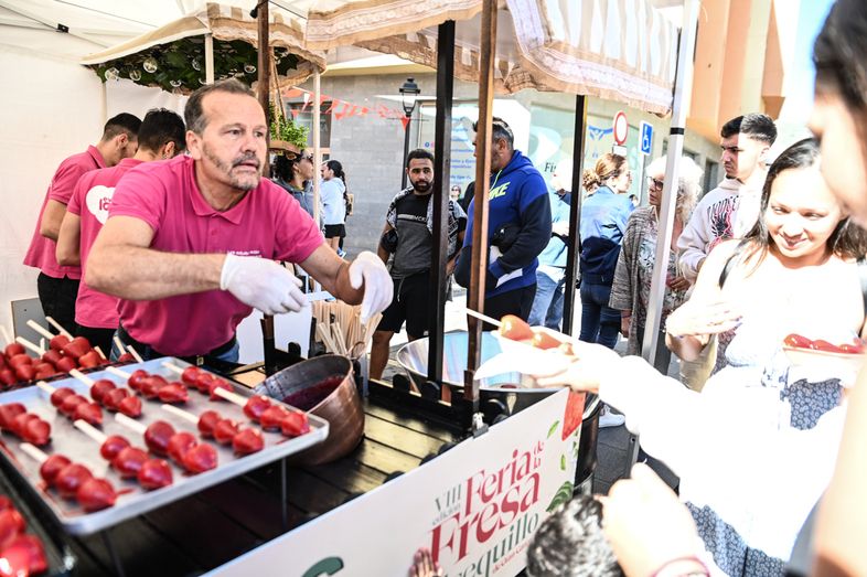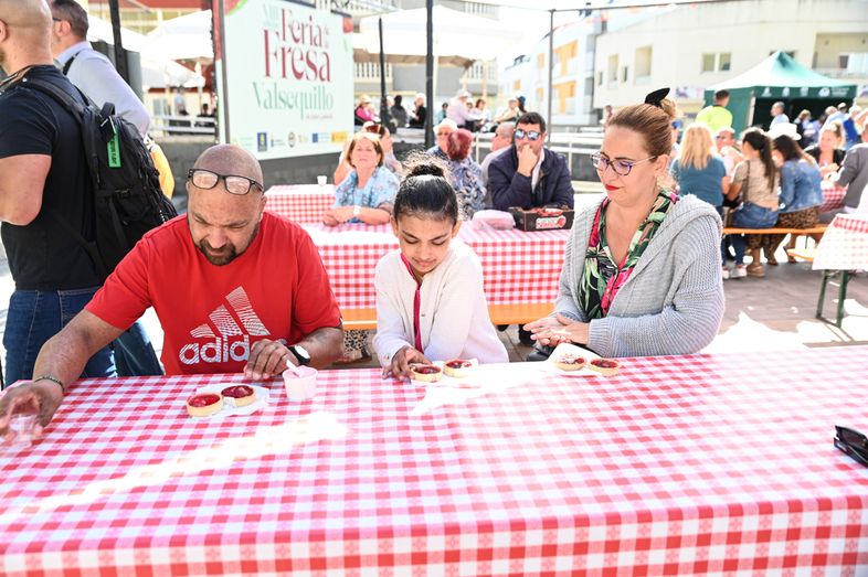La VIII Feria de la Fresa de Valsequillo, organizada por el Ayuntamiento de Valsequillo de Gran Canaria, puso a disposición de sus visitantes más de 1.000 kilos de fresas, cortesía de los agricultores freseros de la zona, que hicieron las delicias de todos al natural, con nata, en tartaletas, batidos y helados. Durante el día muchos han hecho cola para poder degustar algunas de estas delicias que se han repartido en distintos puntos de degustaciones gratuitas.