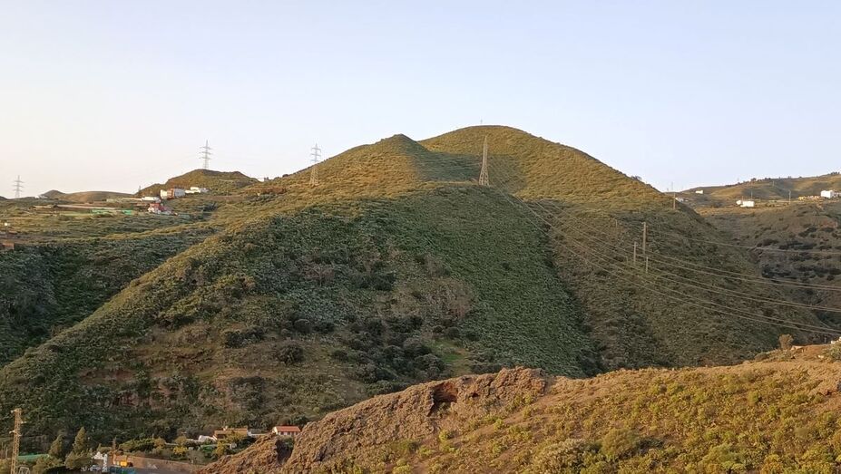 Desde aquí se ve mucho mejor el arco de montañas que cierra todo este amplio valle. El conjunto de volcanes de Lomo Magullo, las cadenas montañosas de la Cumbre y los conos asociados a Bandama, Tafira, La Atalaya y Jinámar.