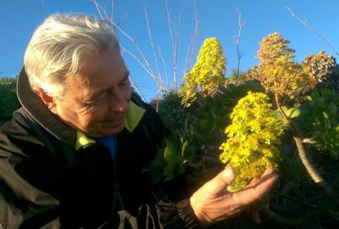 Y en esto nos sorprendió la belleza de las inflorescencias de la hierba puntera (Aeonium manriqueorum) y la fragancia embriagadora de las retamas blancas (Retama rhodorhizoides). Inolvidable ascensión a la cima. Un abrazo te envío desde estas líneas, estimado y apreciado amigo Fran, desde estos conos teldenses que sigo ascendiendo, y lo envío de todo corazón a ese taller valenciano donde sigues desarrollando tu creatividad de artista.