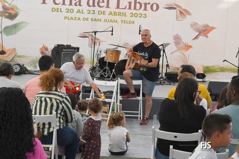 El emotivo homenaje musical que se produjo anoche en el marco de la Feria del Libro de Telde dedicado al autor grancanario Alexis Ravelo, a cargo de Alt- hay Páez y Yeray Rodríguez, y con la participación de Fabiola González ‘La Chinganera’ y Daniela Sepúlveda ‘La Charawilla’, dio paso al último día de feria que tuvo lugar este domngo en la plaza de San Juan.