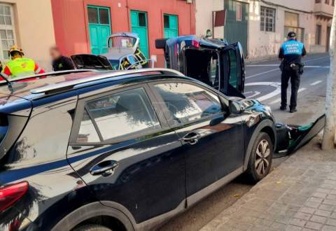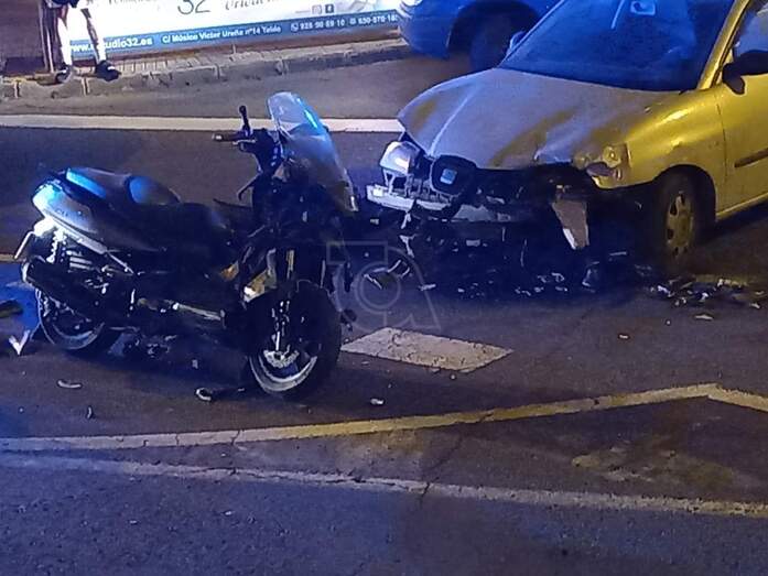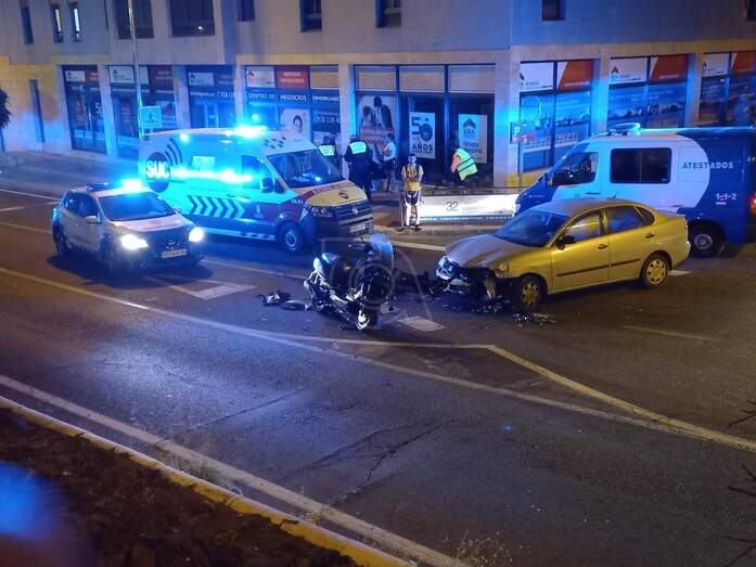 Una fuerte colisión ente una moto y un turismo se produjo esta noche en la intersección de la carretera del Callejón del Castillo con la calle de Profesor Alfonso de Armas Ayala, en el sector de Picachos.
