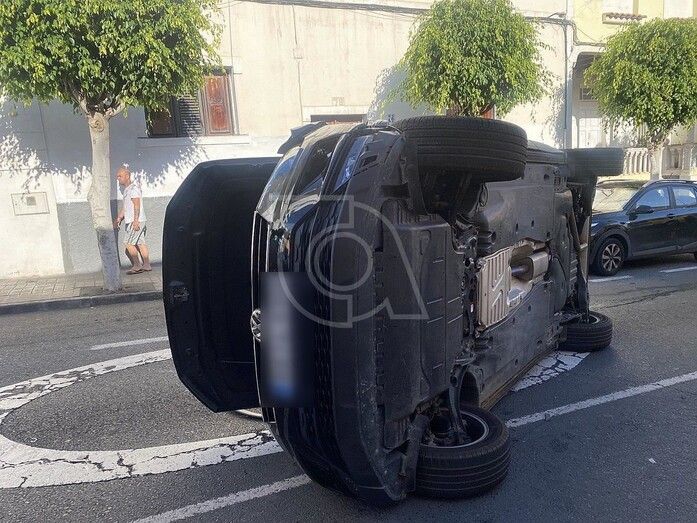 Vuelco de un vehículo tras colisionar frontalmente con otro en la calle Doctor Melián