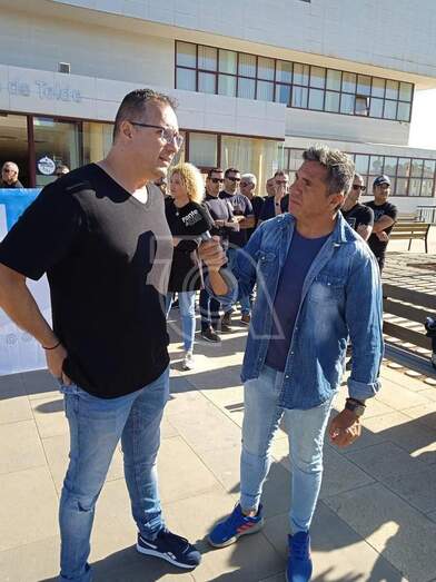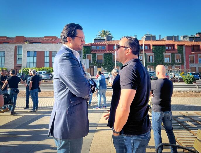 Durante la protesta, que no huelga, los concentrados recibieron las visitas de apoyo de los candidatos de PP e Izquierda Progresista de Telde, Sergio Ramos y Agustín Déniz, respectivamente.
