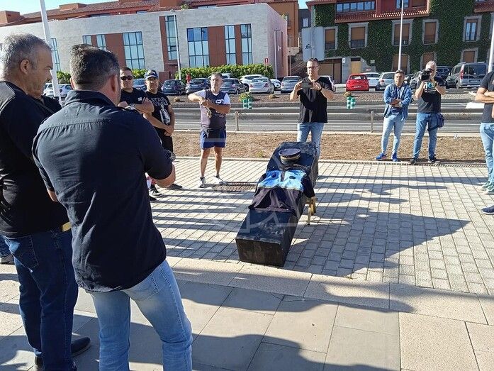 La protesta, promovida al margen de los sindicales, se acompaña de un ataúd de color negro sobre el que han depositado una camisa y gorro oficiales de la Policía Local y los concentrados portan camisetas de color negro. Todo ello en señal de luto para simbolizar el "entierro" de la Policía Local de Telde", tal y como explicó Gustavo Santana, uno de los agentes afectados y portavoz de la referida plataforma. A modo de misa, los policías leyeron un manifiesto para exigir respeto y comprensión para un cuerpo que se debe encargar de la seguridad de 102.000 habitantes.