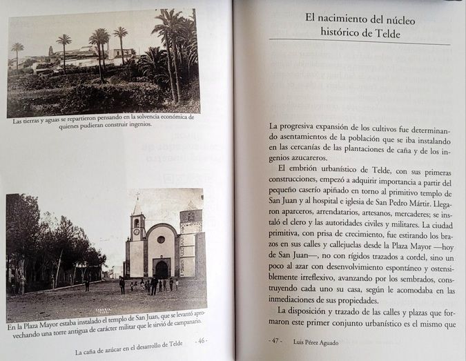 Sobre la obra presentada en la sede de las Casas Consistoriales la tarde del jueves 20 de abril, en la mesa de presentación una caña de azúcar y un libro, el de Pérez Aguado que expone en su intervención la necesidad de retomar este nuevo libro más allá del publicado en una primera edición que con el título ya mencionado entre sus obras: El cultivo de la caña de azúcar en el desarrollo de la ciudad de Telde, que salió a la luz en el periodo (1982-2001).