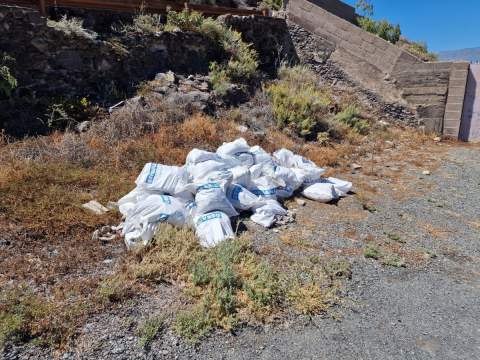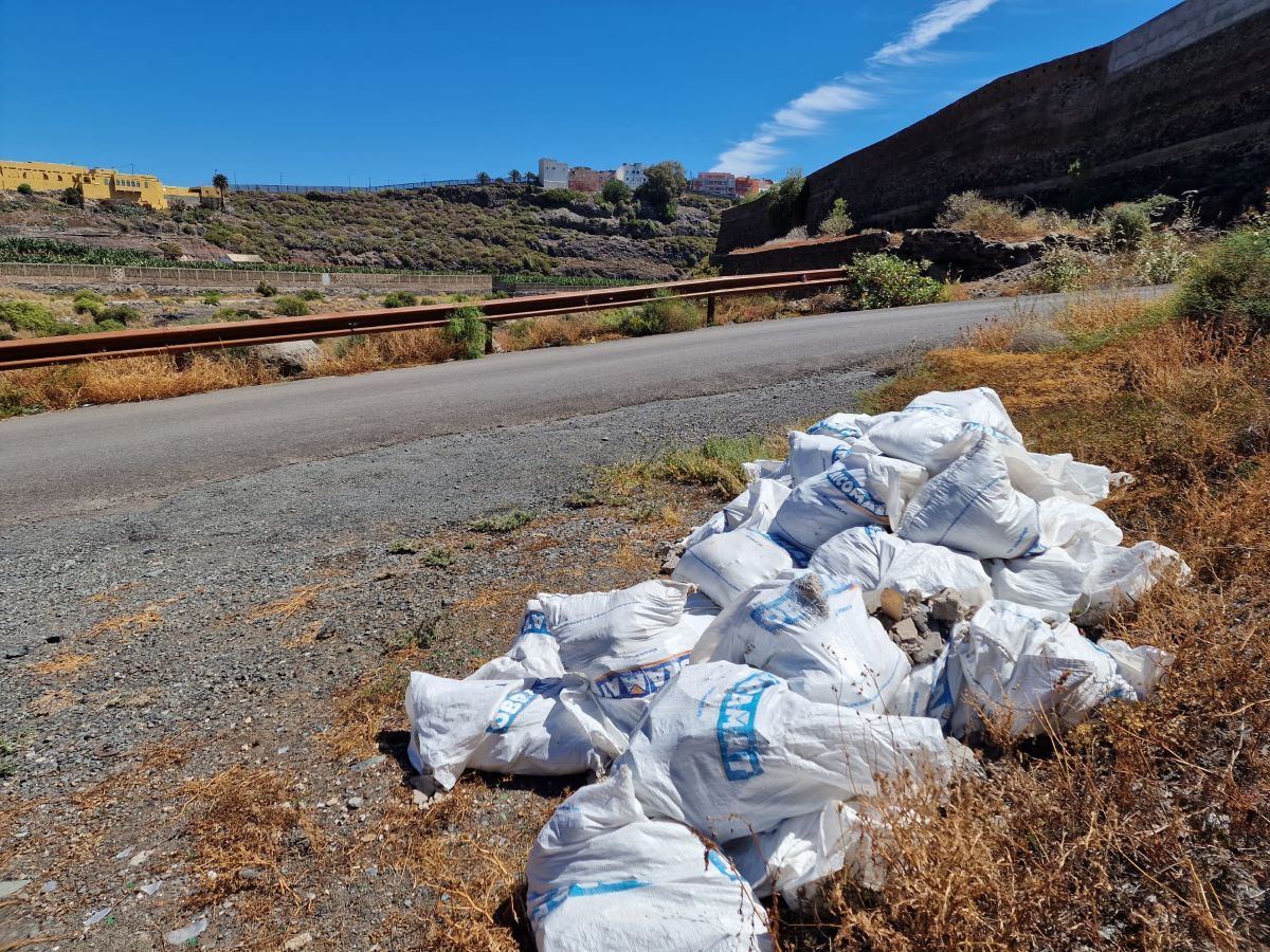 El camino asfaltado que va desde El Cubillo al Barranco Real por El Cascajo lleva camino de convertirse en una nueva escombrera en Telde por la acumulación de bolsas llenas de restos de obras de construcción en uno de los márgenes de esta vía.