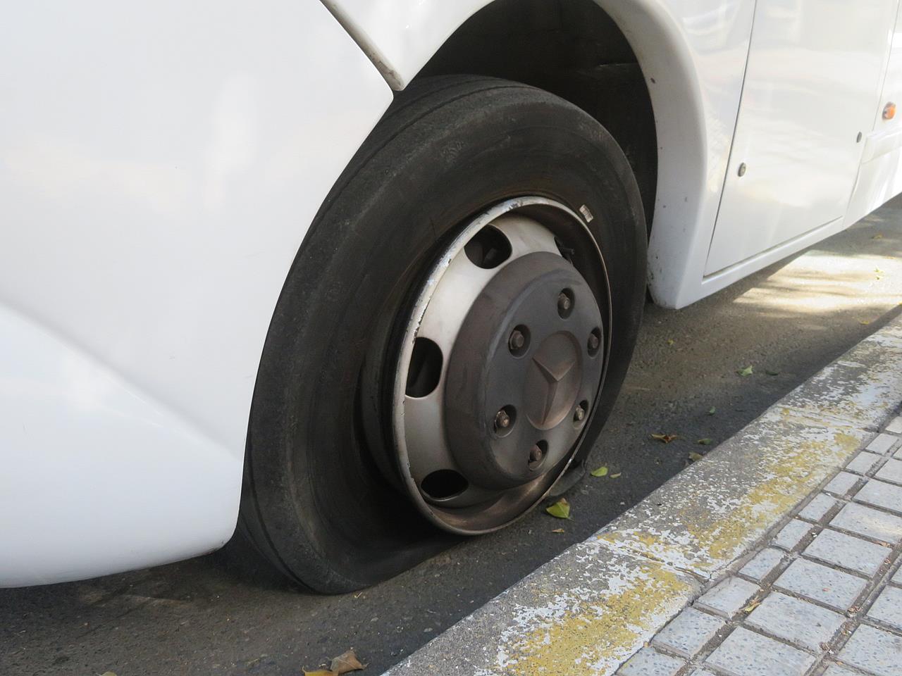 Los viajeros tuvieron que bajarse del vehículo y su conductora esperar a que llegaran los servicios técnicos de la empresa para el cambio del neumático.