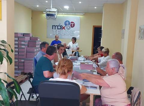 La formación que lidera el concejal y candidato a la Alcaldía de Telde, Juan Francisco Artiles, mantiene desde hace días un intenso ajetreo en su sede del sector del Parque Franchy Roca, en Los Lanos, ya que se ha marcado el reto de ensobrar 400.000 papeletas para llegar a todos los hogares del municipio.