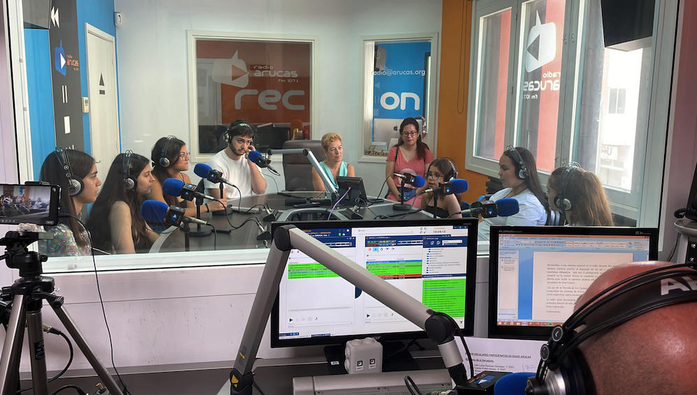 Asimismo el alumnado teldense pudo participar activamente en Radio Arucas, como complemento al trabajo desarrollado en Radio La Herradura, radio escolar del IES, así como en el taller de música tradicional canaria.