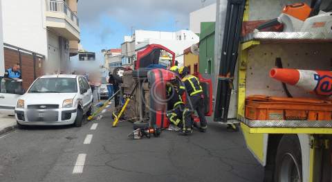Fruto de la colisión, que causó retenciones en sentido sur, dos personas resultaron heridas, según ha informado el Centro Coordinador de Emergencias y Seguridad del Gobierno de Canarias 112.