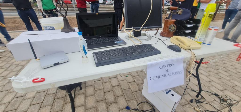En la jornada de este viernes, los concentrados han escenificado un Centro de Comunicaciones en precario y denunciado el estado de las instalaciones que usa la Policía Local de Telde en San Juan.