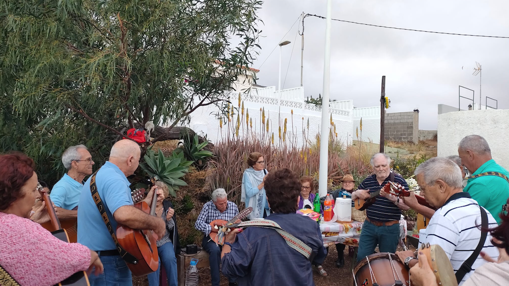 Para celebrar esta festividad e inaugurar la nueva cruz, el colectivo vecinal que dirige Raúl Hernández invitó a la Parranda del Roque Azucarero. Los vecinos engalanaron con flores este elemento y la agrupación puso la música al acto.