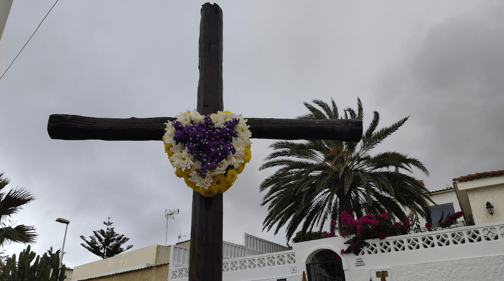 El barrio de Lomo Guinea estrenó en estos días una nueva estructura para su Cruz de Mayo, después de que unos desaprensivos destrozaran la anterior.