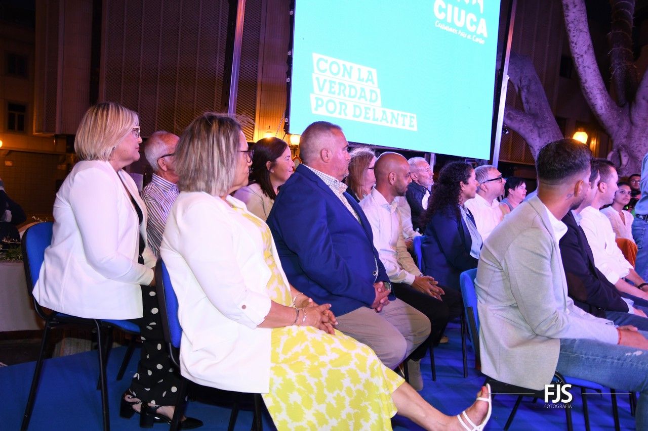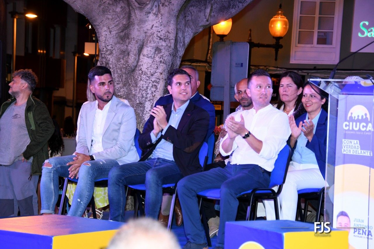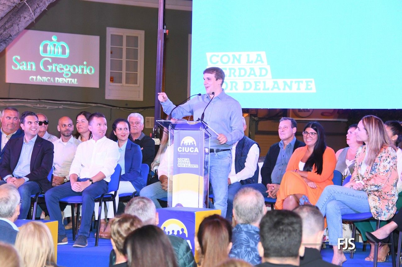 Ciuca congregó esta noche a cientos de personas en el recinto público de la zona comercial de Telde en un acto al que ssistieron el presidente de este partido y exconcejal, Guillermo Reyes; el consejero insular y candidato a la Alcaldía de San Bartolomé de Tirajana PP AV-PP, Marco Aurelio Pérez, y el también consejero insular teldense Daniel Reyes, miembro de Ciuca, que intervino desde la tribuna de oradores.