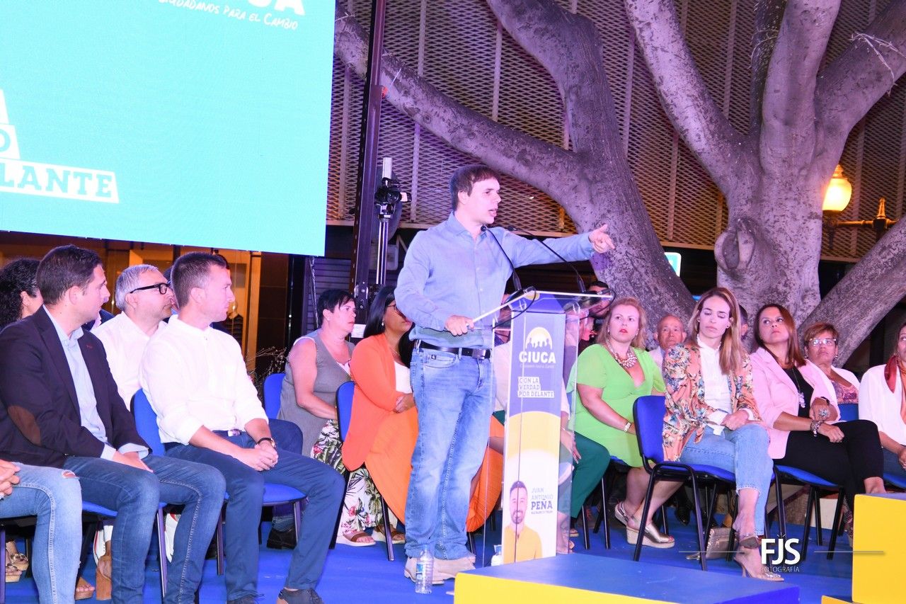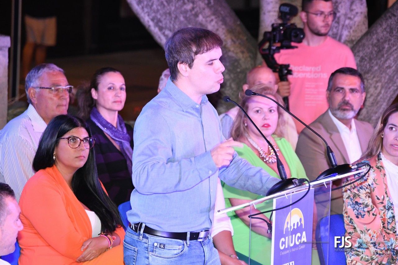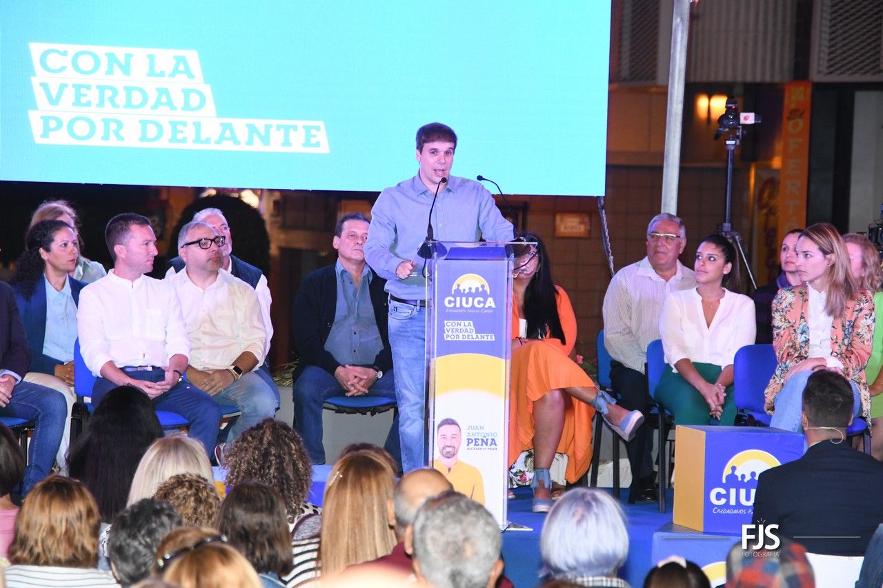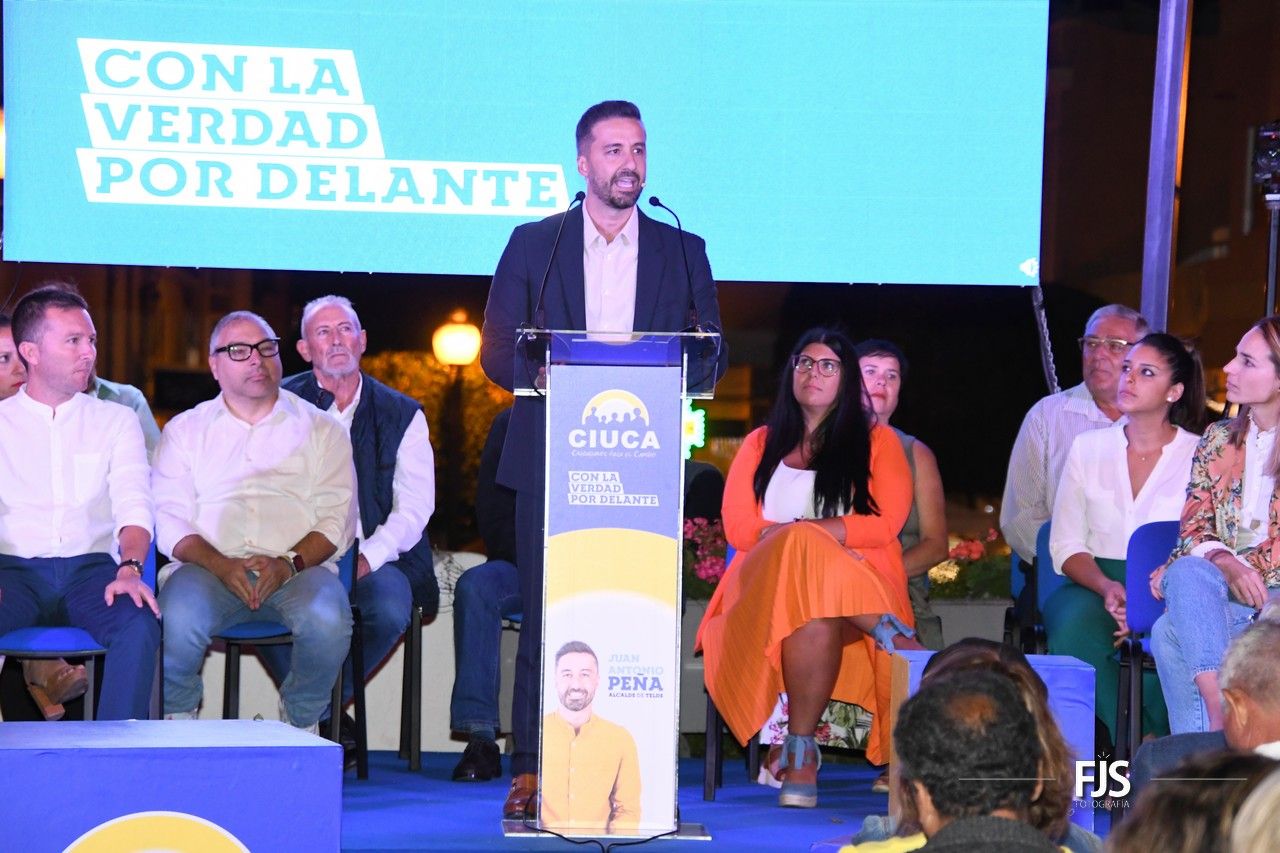 Ciuca congregó esta noche a cientos de personas en el recinto público de la zona comercial de Telde en un acto al que ssistieron el presidente de este partido y exconcejal, Guillermo Reyes; el consejero insular y candidato a la Alcaldía de San Bartolomé de Tirajana PP AV-PP, Marco Aurelio Pérez, y el también consejero insular teldense Daniel Reyes, miembro de Ciuca, que intervino desde la tribuna de oradores.