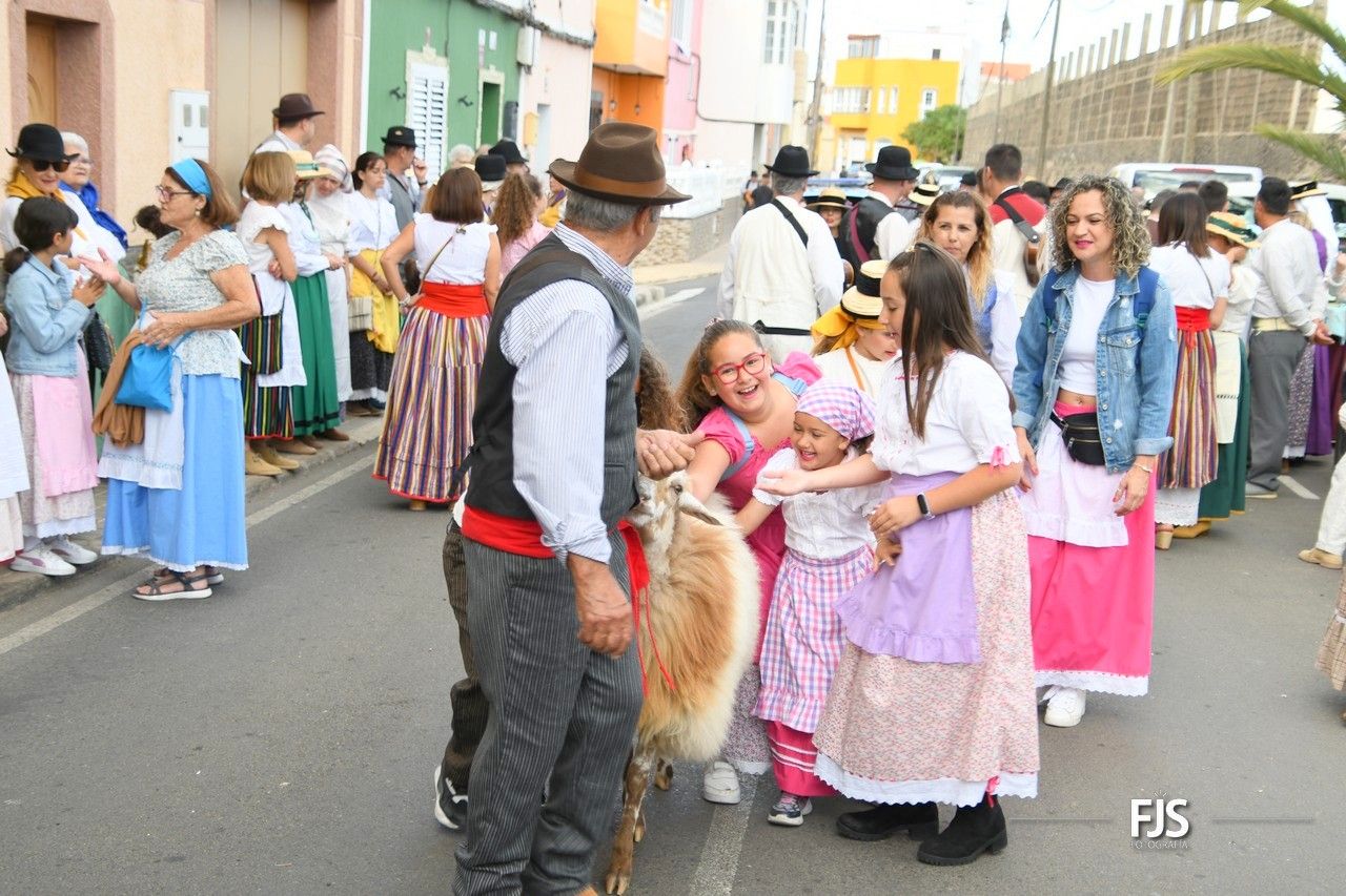 En la romería participaron vecinos del entorno poblacional de El Calero y de otros núcleos de Telde. Entre los asistentes se encontraba el pregonero de esta edición de las fiestas, el vicealcalde de la ciudad, Héctor Suárez.