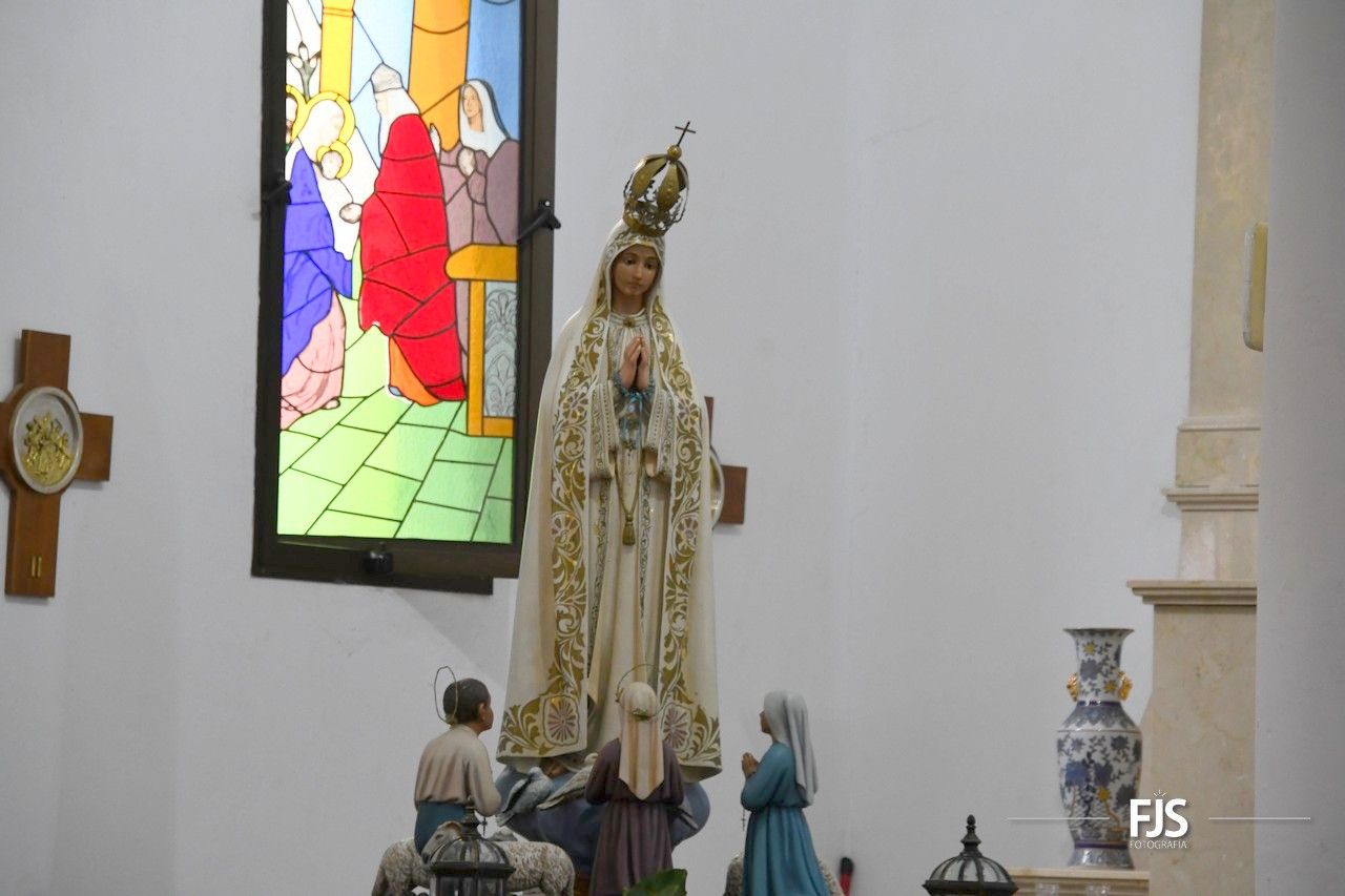 Una animada romería popular recorrió este sábado por la tarde-noche las calles de El Calero Bajo para ofrendar a su patrona la Virgen de Fátima.
