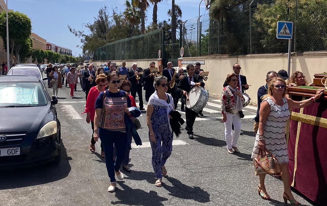 El desfile religioso partió a las 11.30 horas del templo bajo su advocación en La Pardilla y tras la eucaristía volvió a él, con el acompañamiento de autoridades públicas, feligreses y la Banda Municipal de Música.