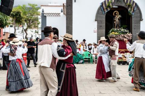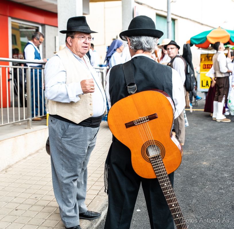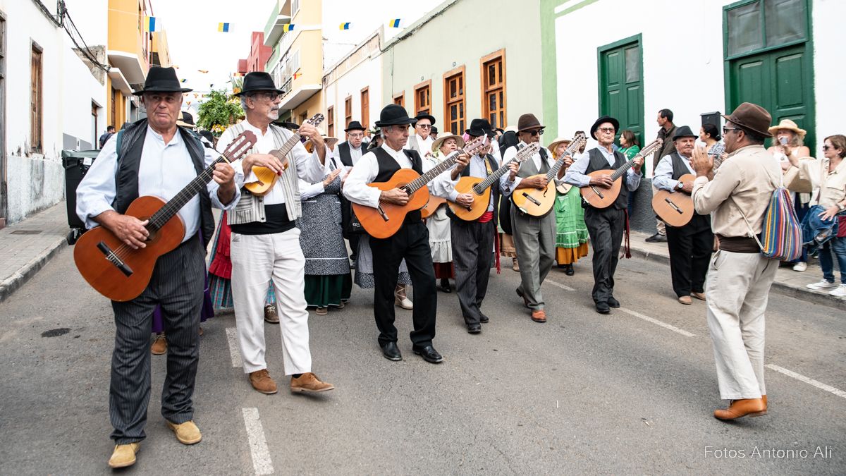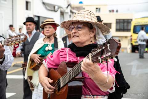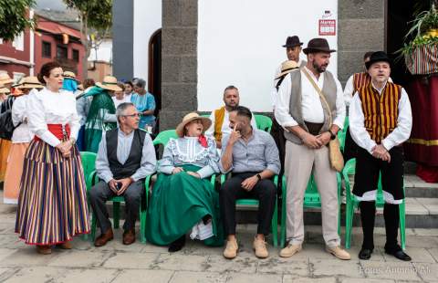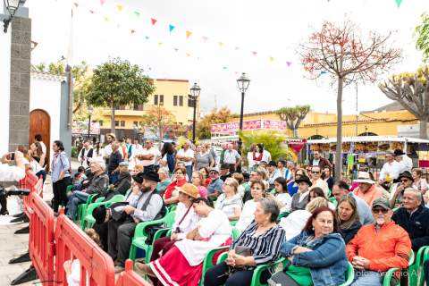La música folclórica en la Plaza de San Isidro acompañó a todos los romeros mientras los grupos de familias y amigos se reunían para compartir lo preparado para la ocasión: tortillas, huevos duros y dulces, y el sonido de guitarras y timples que no dejaron de sonar en honor al santo patrón.