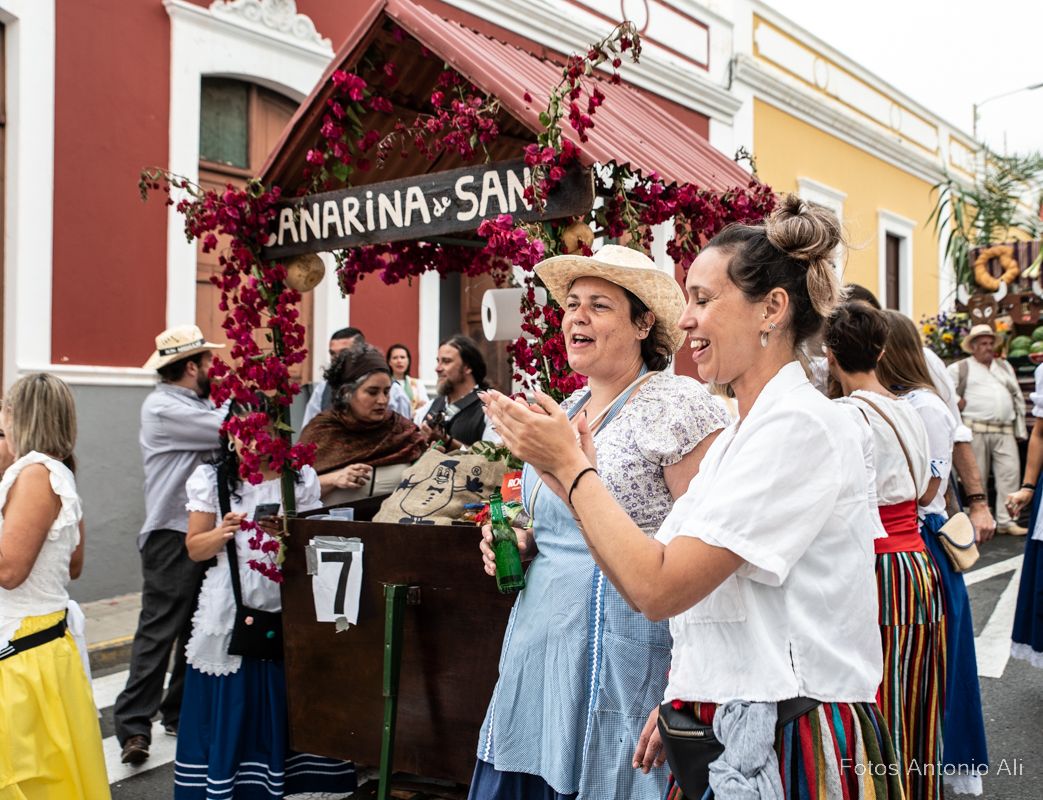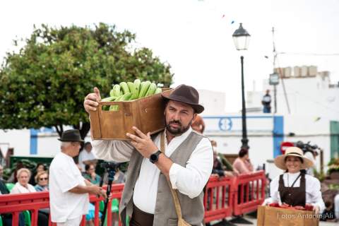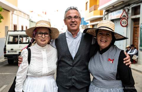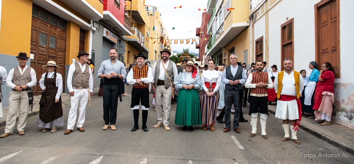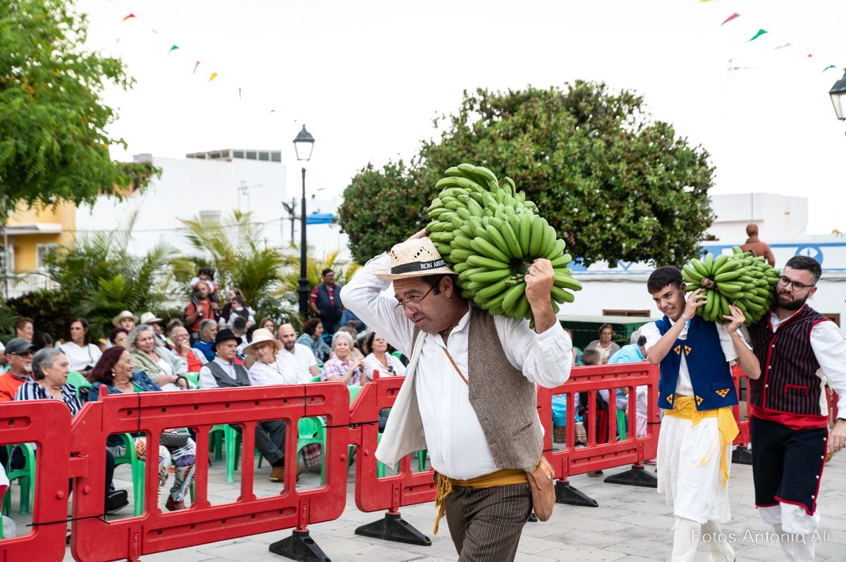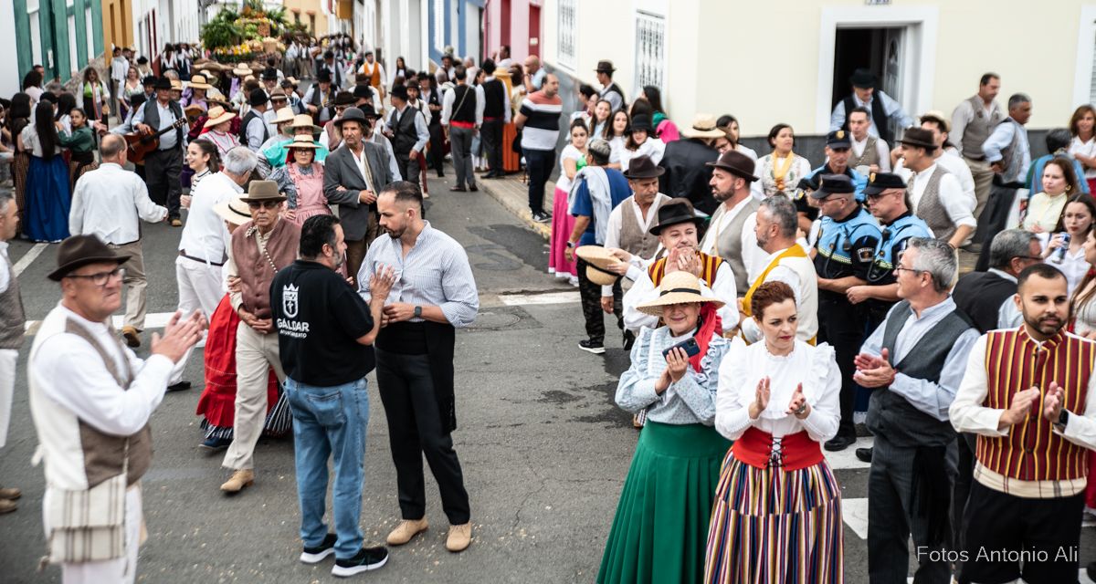La corporación municipal, presidida por el alcalde de la ciudad, Teodoro Sosa Monzón, junto a los concejales y representantes vecinales estuvieron al frente de la romería hasta su llegada al frontis de la ermita de San Isidro, donde todo estaba dispuesto para acoger las numerosas ofrendas, principalmente provenientes de los cultivos más tradicionales, como plátanos y cebollas, y también productos no perecederos.
