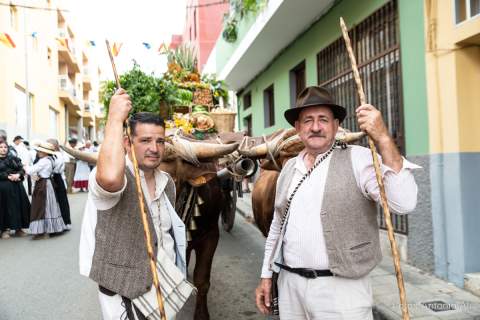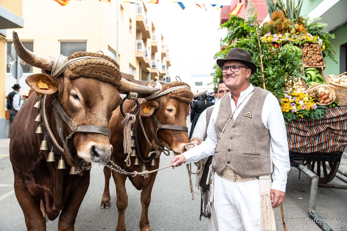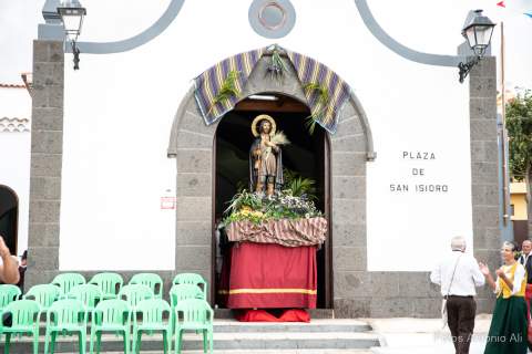 El barrio de San Isidro vivió este sábado su tradicional romería ofrenda en la que cientos de vecinos quisieron realizar su ofrenda al patrón de los agricultores y vivir una fiesta donde la exaltación de las costumbres canarias fue la principal protagonista.