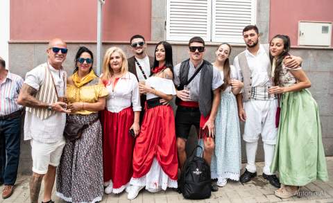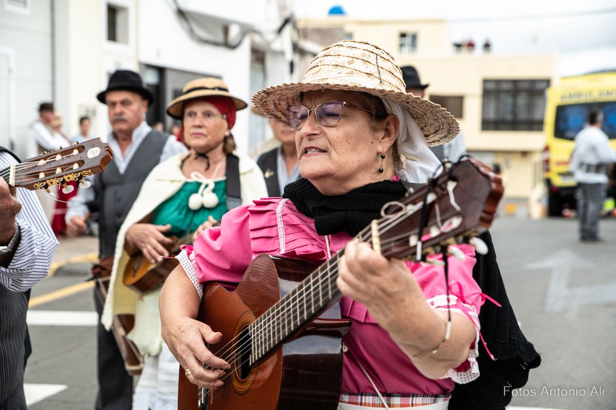 Ataviados con la indumentaria canaria, pequeños, jóvenes y mayores se dispusieron a realizar el recorrido junto a las nueve carretas y a las agrupaciones musicales que celebraron esta romería.
