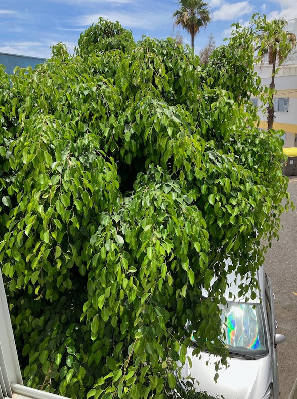 "Como cada año, llegamos a esta temporada sin que el Ayuntamiento se haya encargado de las podas. Y como cada año, estamos obligados a vivir con las ventanas cerradas para la cantidad de avispas, moscas y bichos que se esconden y viven en las ramas  que llegan a tocar dichas ventanas", expone la vecina Anna Flavia Sorbi Tumodei.