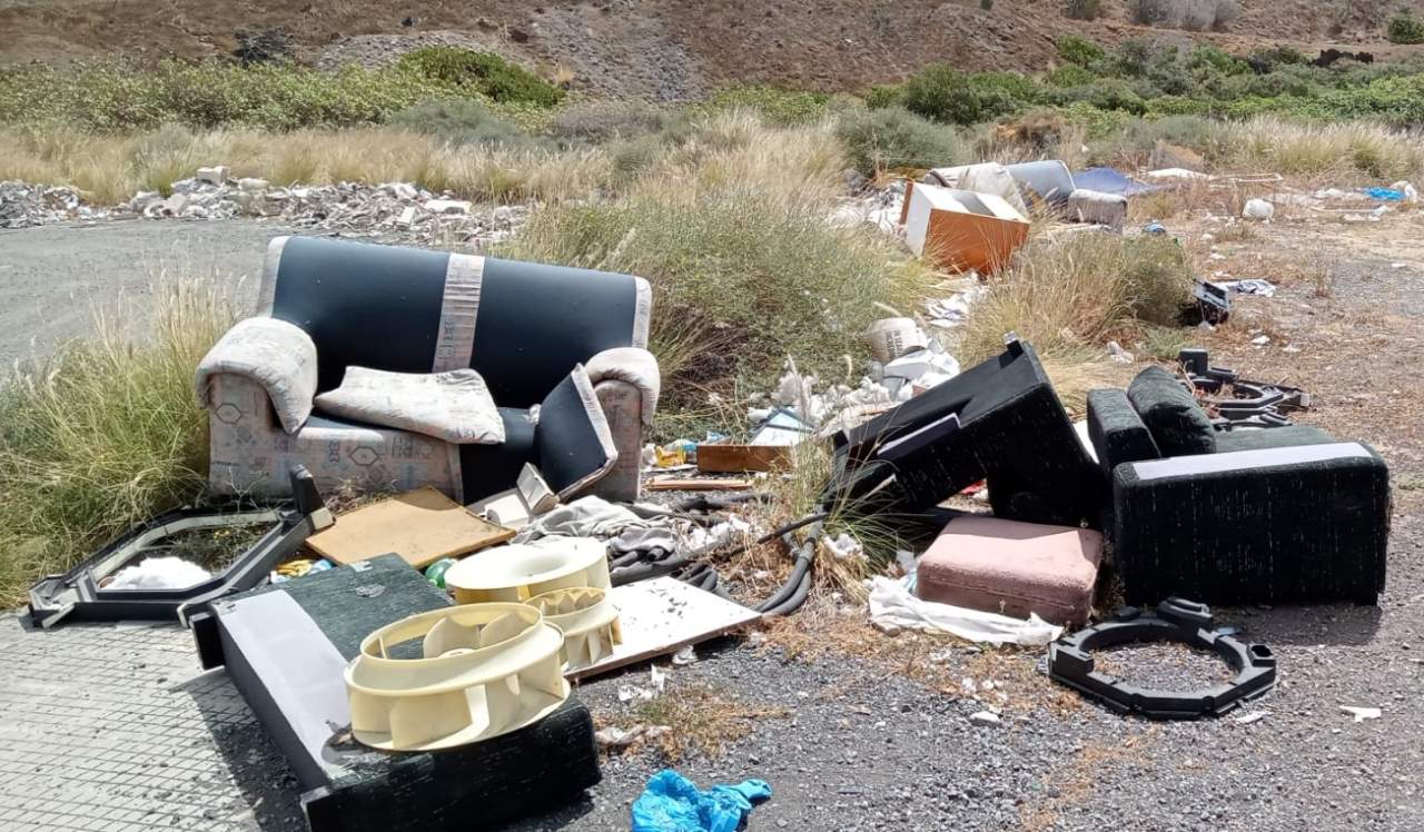 El entorno de la explanada de Eucaliptos II, en el Valle de Jinámar, que suele usada para las prácticas de guaguas de los conductores noveles es un estercolero y una escombrera, un lugar al que acuden personas de otros municipios a depositar enseres domésticos estropeados y bolsas con restos de obra de construcción.