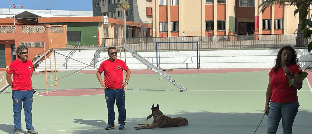 El alumnado del CEIP San Juan de Telde disfrutó recientemente de una exhibición de un grupo de búsqueda y salvamento con perros.