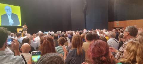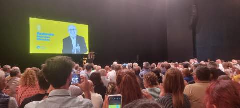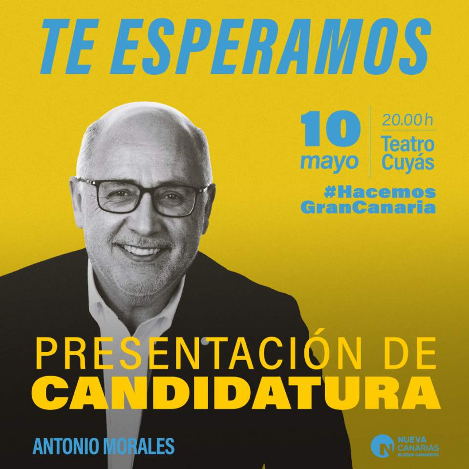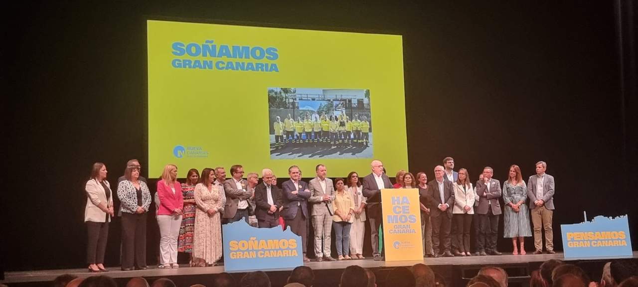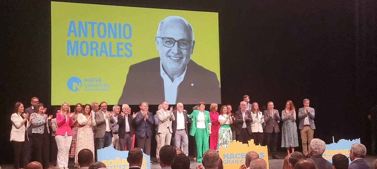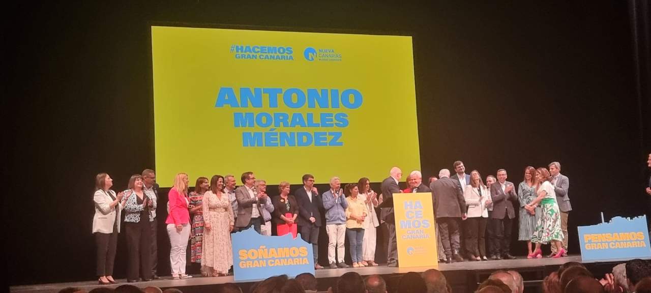 Con todas las butacas ocupadas, el Teatro Cuyás fue el escenario elegido por NC para presentar este miércoles su candidatura al Cabildo de Gran Canaria del 28M, encabezada por Antonio Morales, el actual presidente de la corporación y aspirante a lo que no ha conseguido nadie en Democracia, un tercer mandato consecutivo al frente de esta institución.