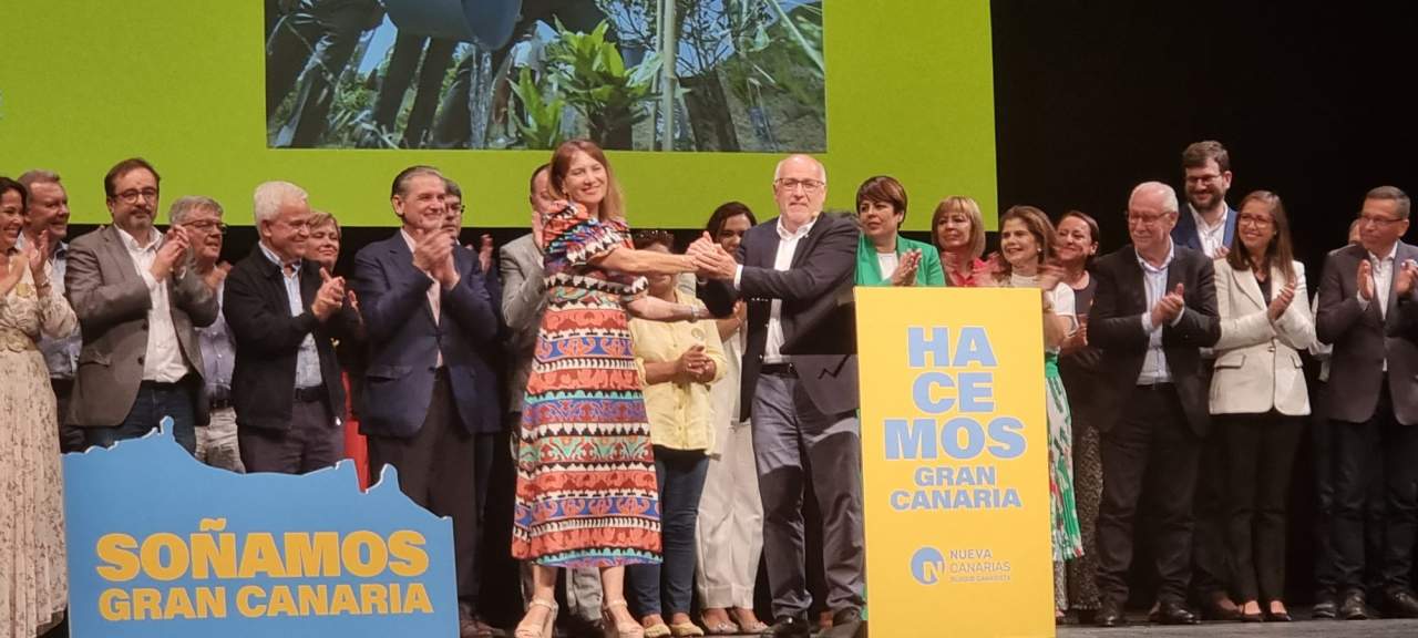 Le precedieron en el uso de la palabra sus dos principales escuderos en la precampaña, los números 2 y 3 de la lista, Teodoro Sosa y Minerva Alonso, el líder de NC y candidato a presidente del Gobierno de Canarias, Román Rodríguez, y el aspirante a ser alcalde de la capital de la isla, Pedro Quevedo.