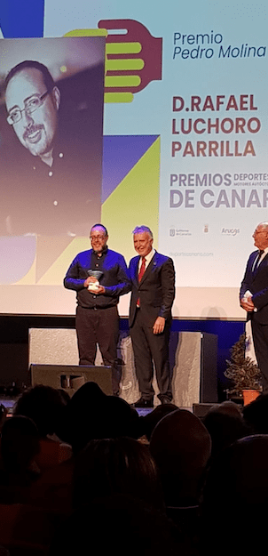 El trabajador del Ayuntamiento de Telde Rafael Luchoro Parrilla ha sido distinguido por el Gobierno de Canarias, a través de la Dirección General de Deportes, con el Premio Canarias Pedro Molina 2023 en reconocimiento a su labor en el fomento y la difusión de los deportes y juegos motores autóctonos y tradicionales.