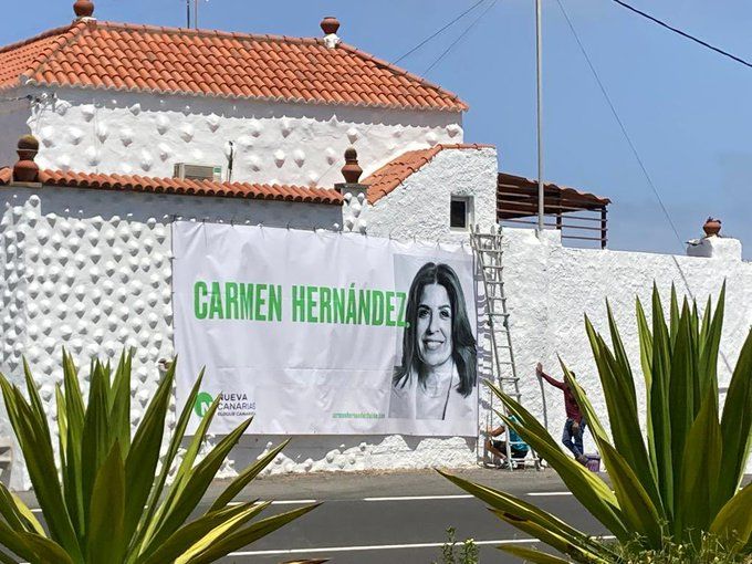 El PP indica en su denuncia que en la lona que se estaba colocando a las 15.00 horas de este jueves era visible el nombre y foto de la candidata de Nueva Canarias, Carmen Hernández, por lo que entiende que su instalación “infringe la normativa legal” y que el partido canarista ha actuado con premeditación y mala fe al ser perfecto conocedor de la prohibición legal de colocar pancartas” antes del inicio de la campaña electoral, que arranca esta medianoche.