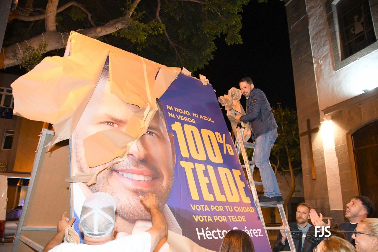 La campaña electoral del 28M arrancó esta medianoche en Telde con la tradicional pegada de carteles en la plaza de Los Llanos de la ZCA de la ciudad, una cita a la que han acudido candidatos, simpatizantes y militantes de las diferentes organizaciones políticas que concurren a estos comicios locales.