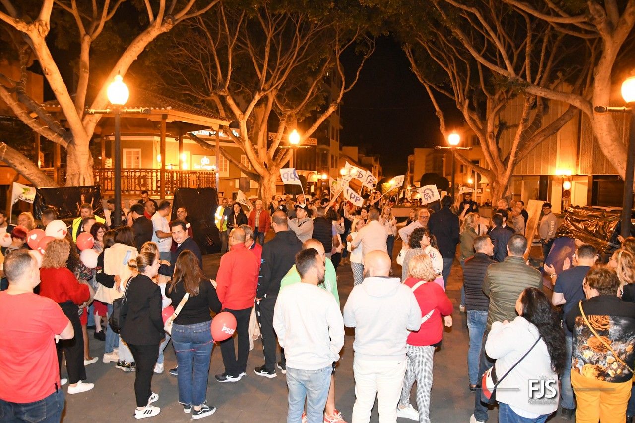Más por Telde optó por hacerlo en el Parque Franchy Roca, recinto que está a pocos metros de su sede política, aunque miembros de esta formación sí estuvieron presentes en la plaza de Los Llanos al igual que de Reunir Canarias.