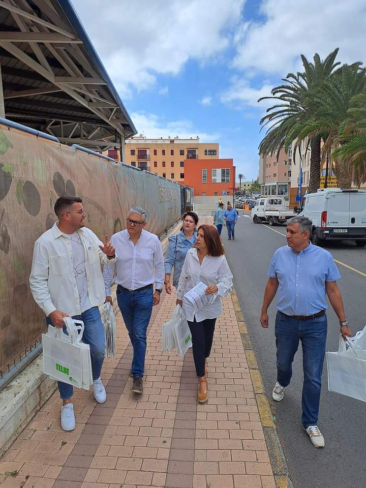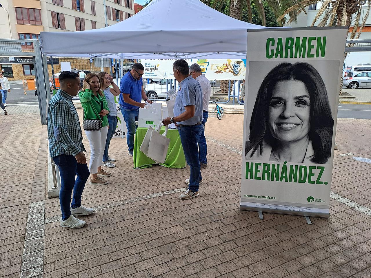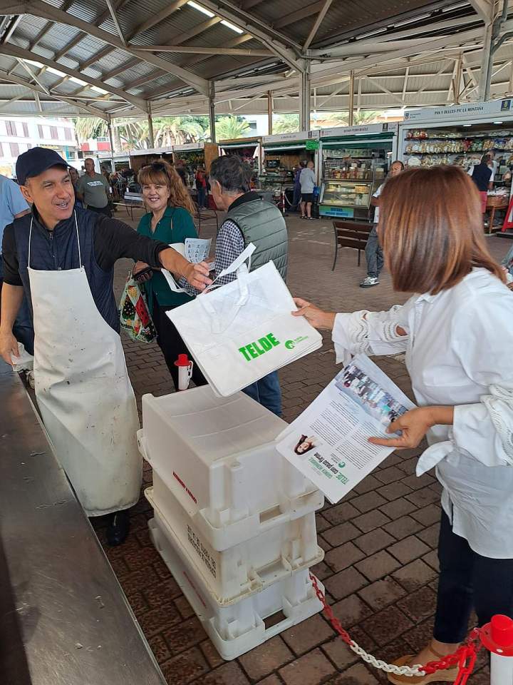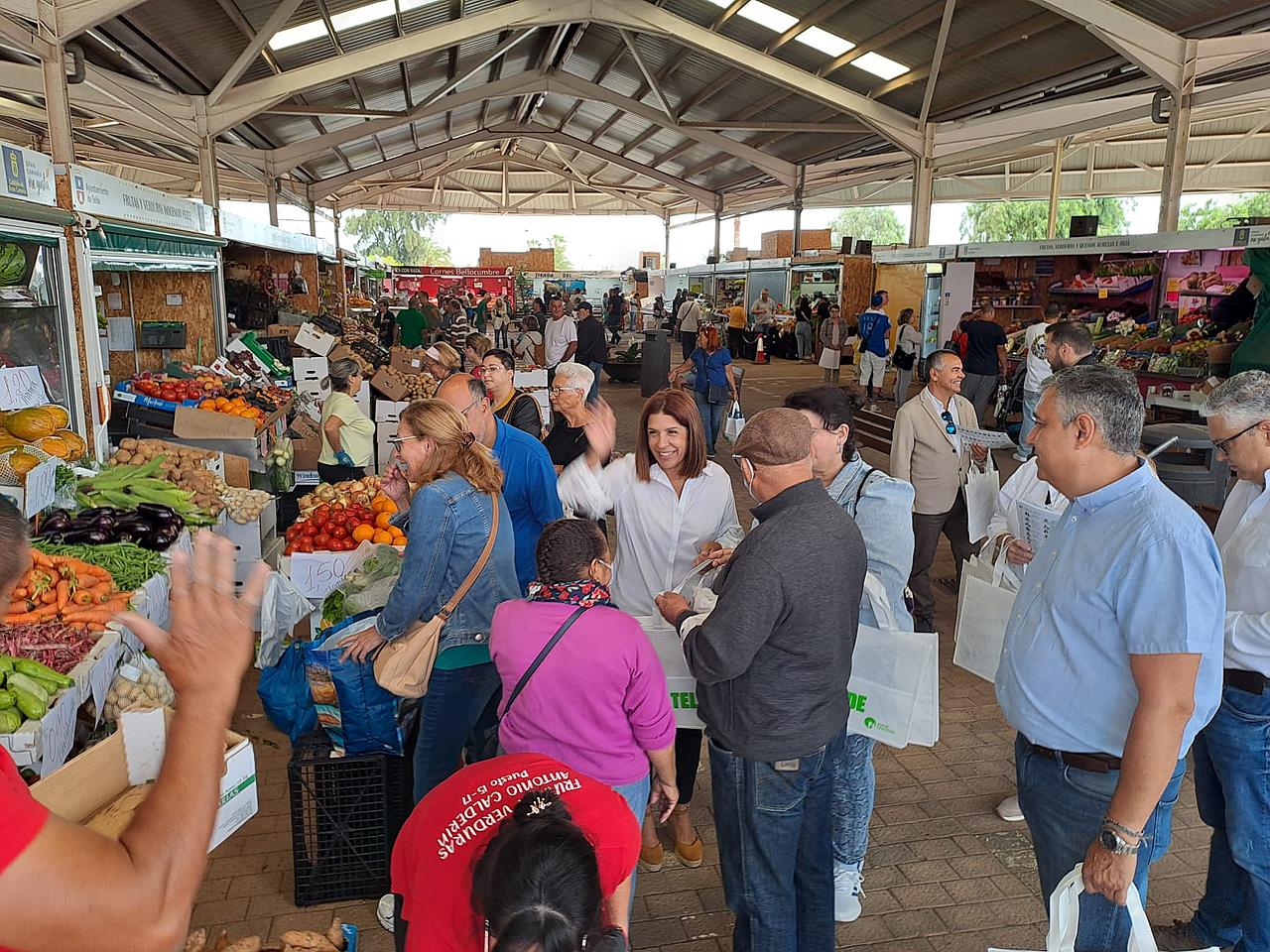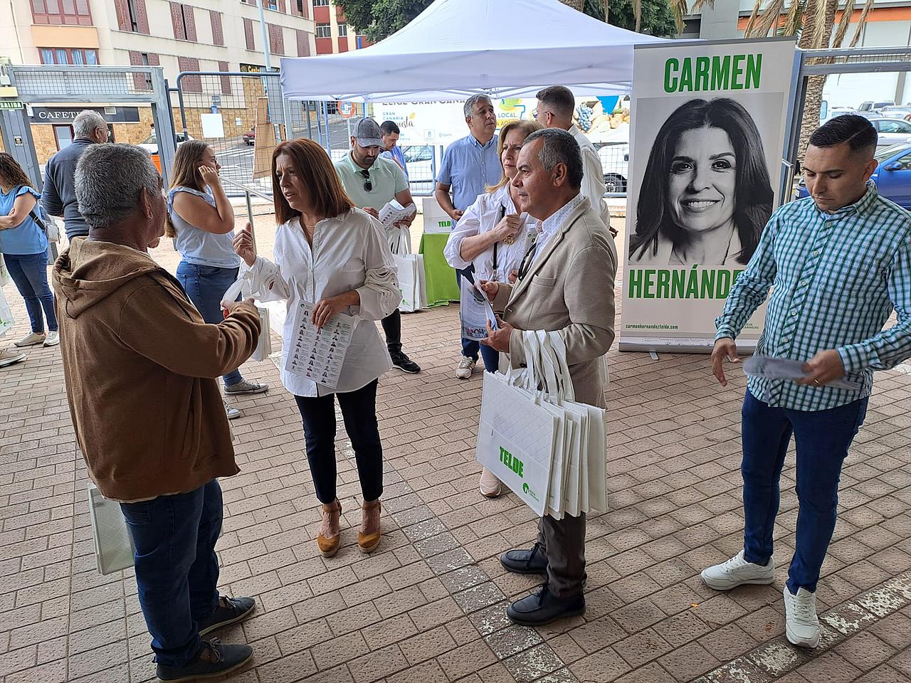 La candidata a la reelección como alcaldesa de Telde por Nueva Canarias, Carmen Hernández, recorrió durante la mañana de este sábado el Mercado Municipal, el mercadillo de Narea y Los Llanos junto a varias de las personas que la acompañan en la candidatura para acercar las propuestas canaristas a la ciudadanía.