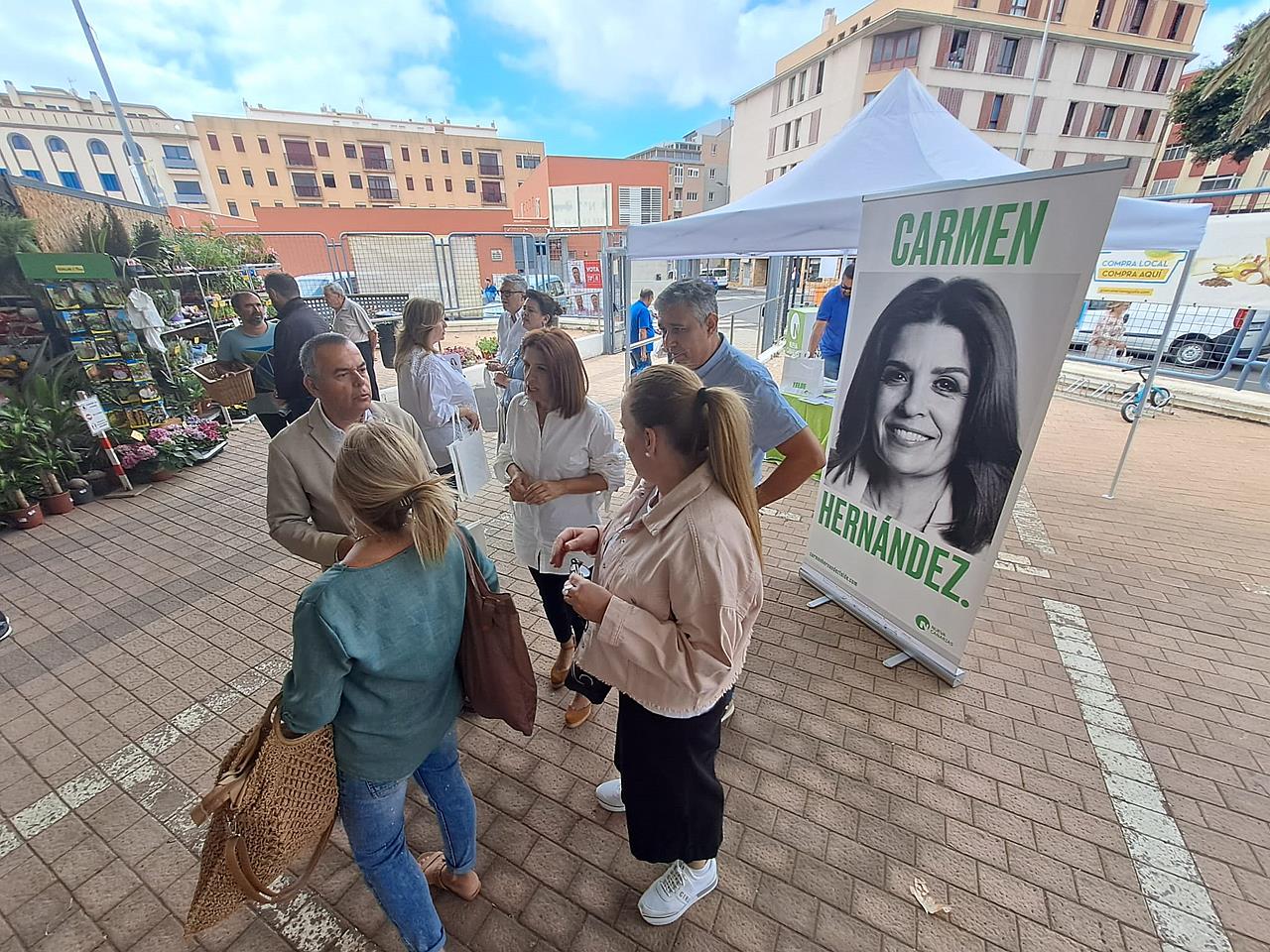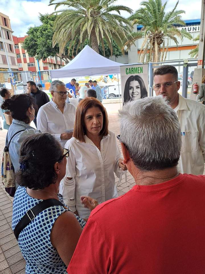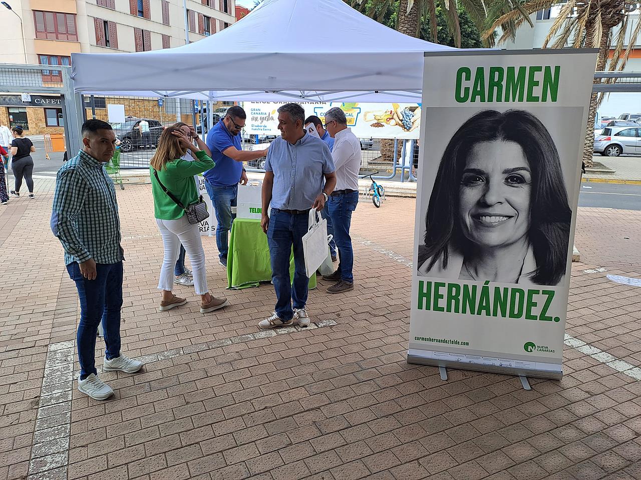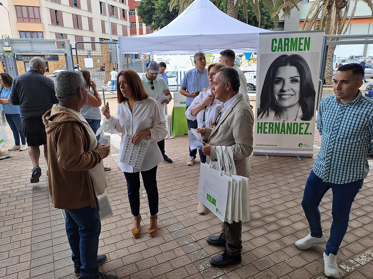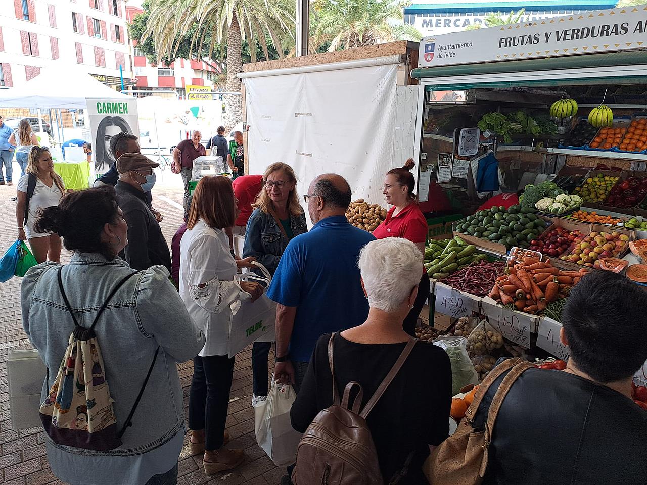 La candidata a la reelección como alcaldesa de Telde por Nueva Canarias, Carmen Hernández, recorrió durante la mañana de este sábado el Mercado Municipal, el mercadillo de Narea y Los Llanos junto a varias de las personas que la acompañan en la candidatura para acercar las propuestas canaristas a la ciudadanía.