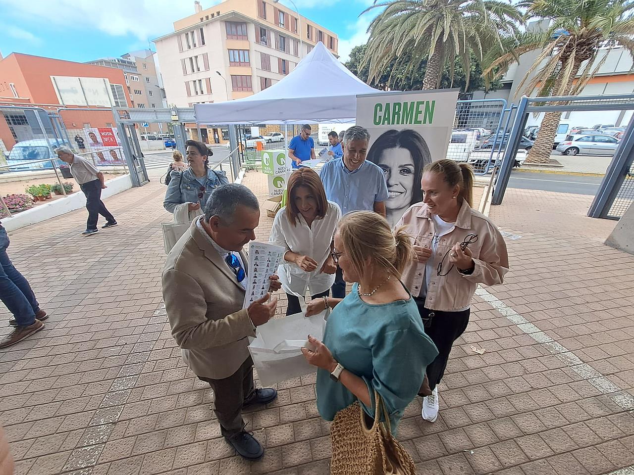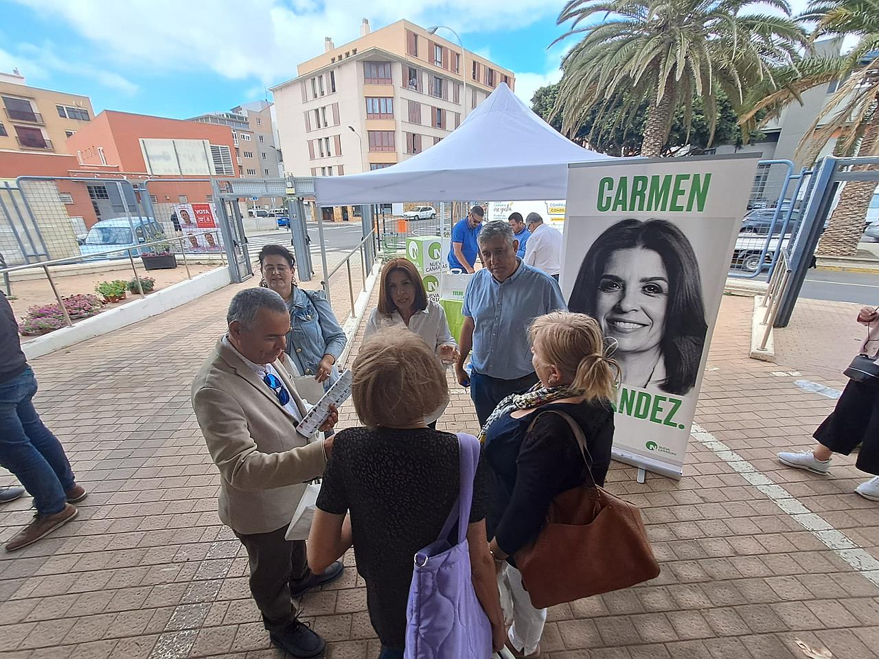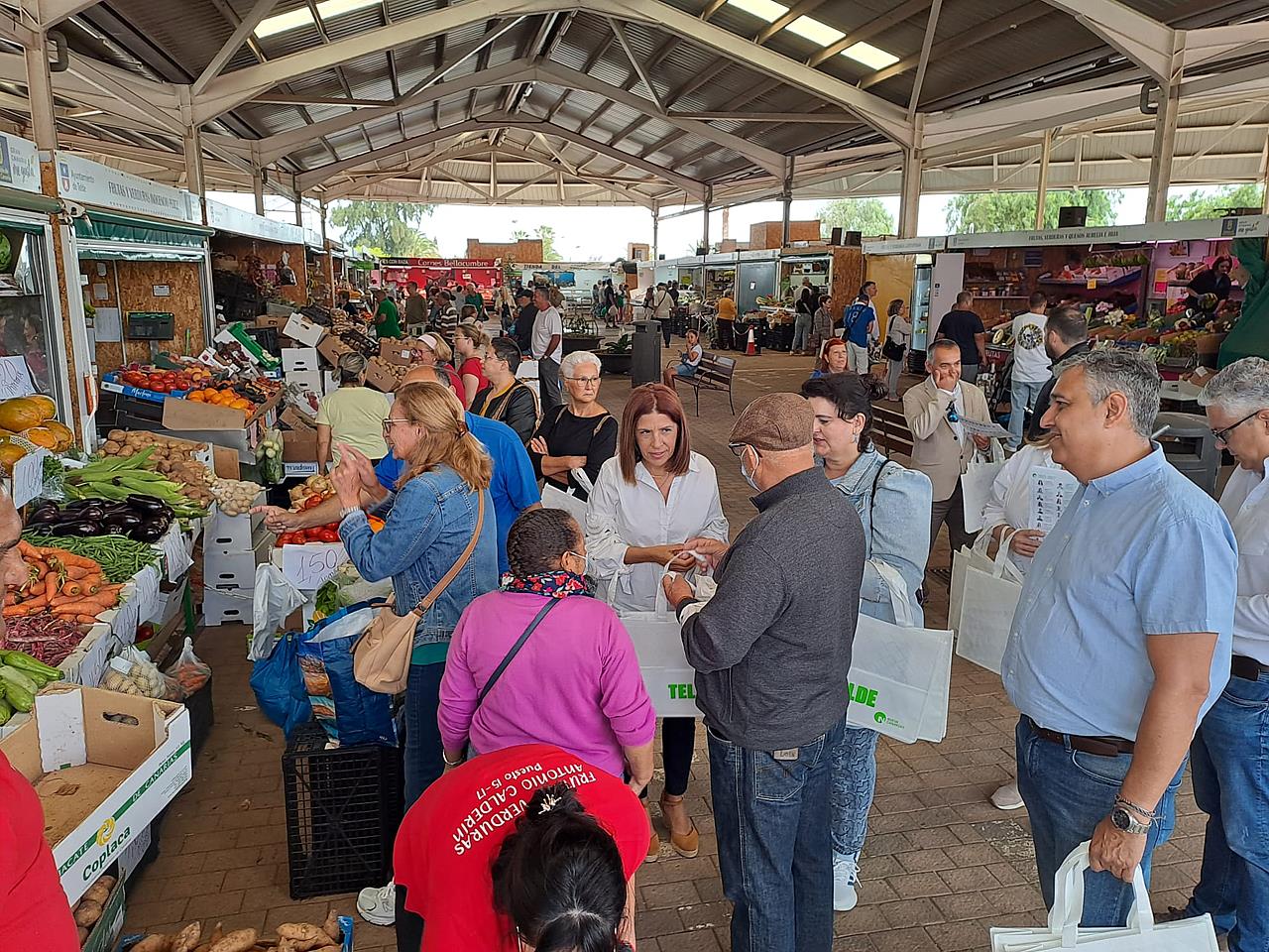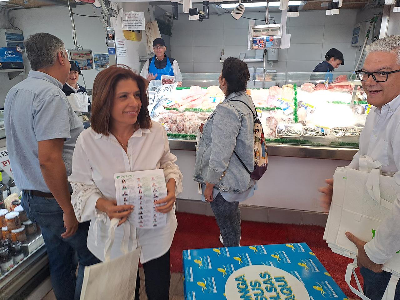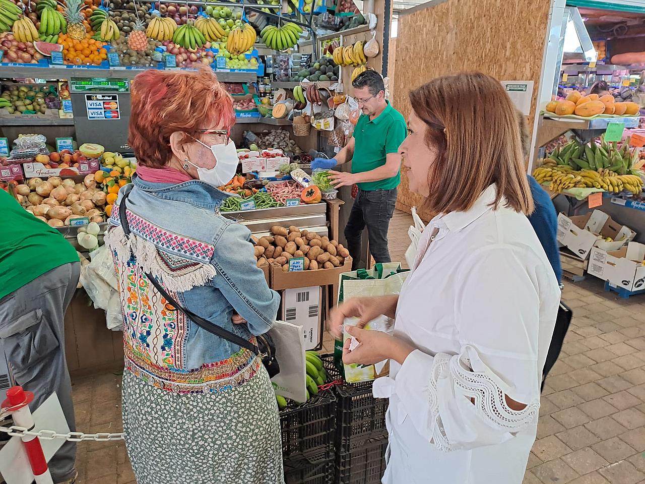 La candidata a la reelección como alcaldesa de Telde por Nueva Canarias, Carmen Hernández, recorrió durante la mañana de este sábado el Mercado Municipal, el mercadillo de Narea y Los Llanos junto a varias de las personas que la acompañan en la candidatura para acercar las propuestas canaristas a la ciudadanía.
