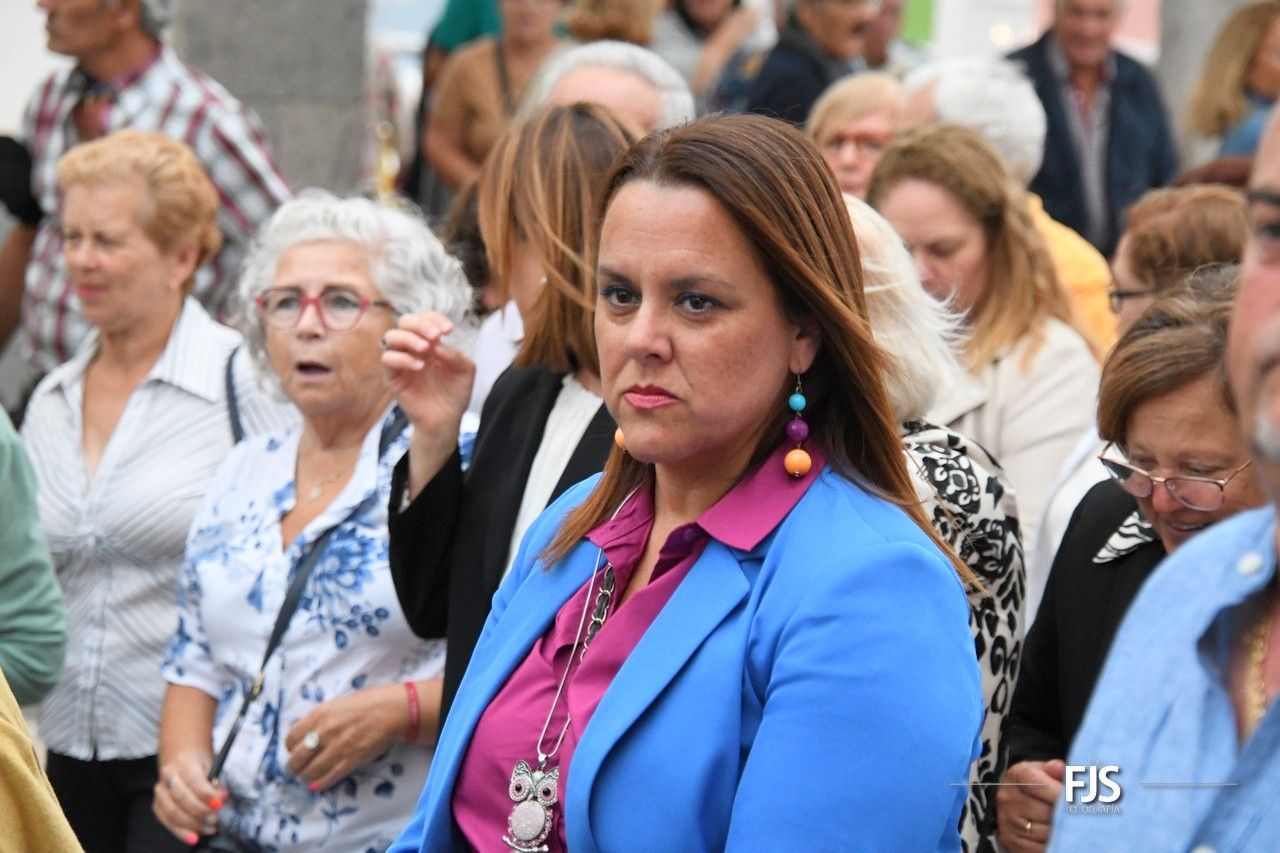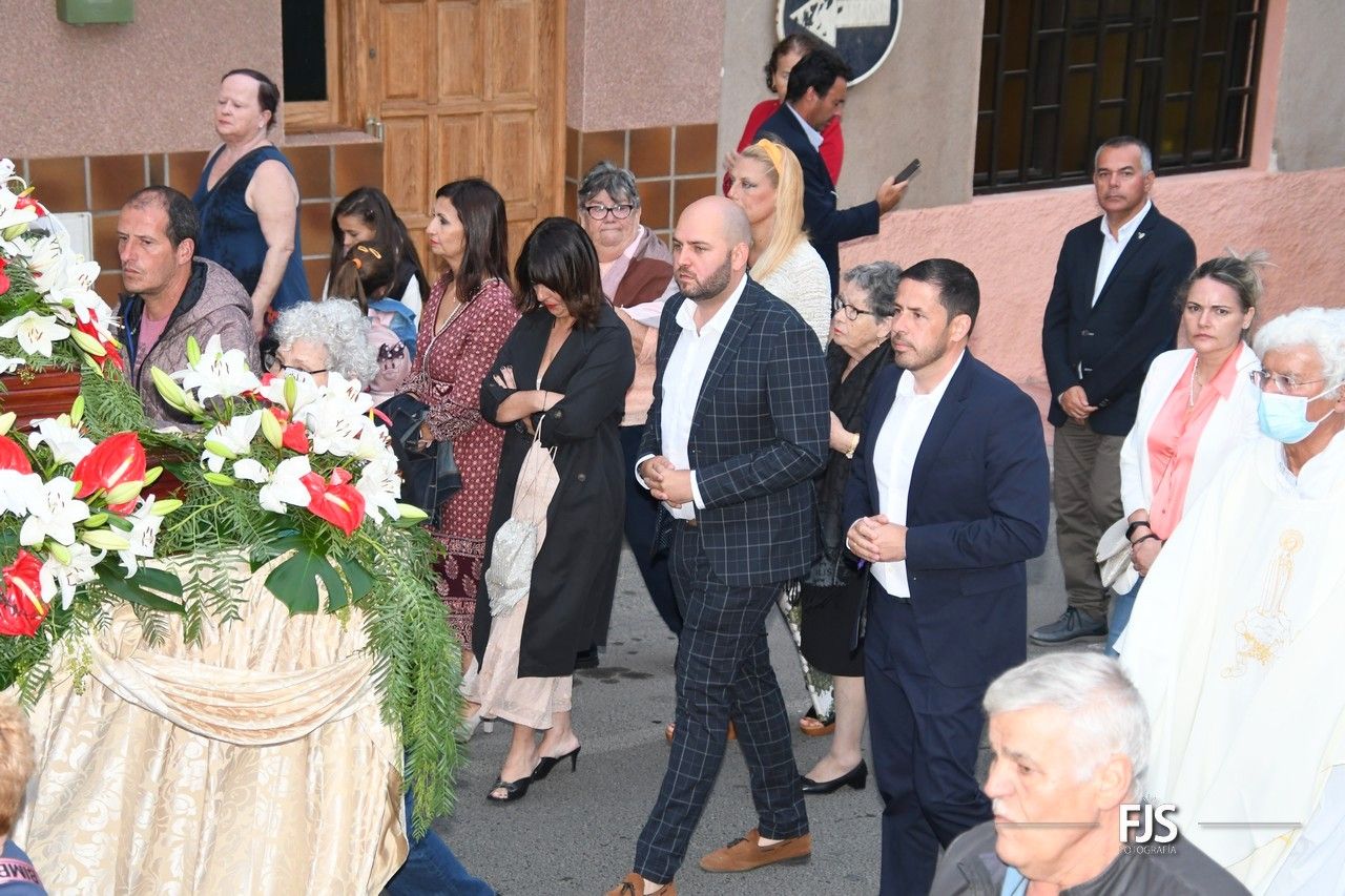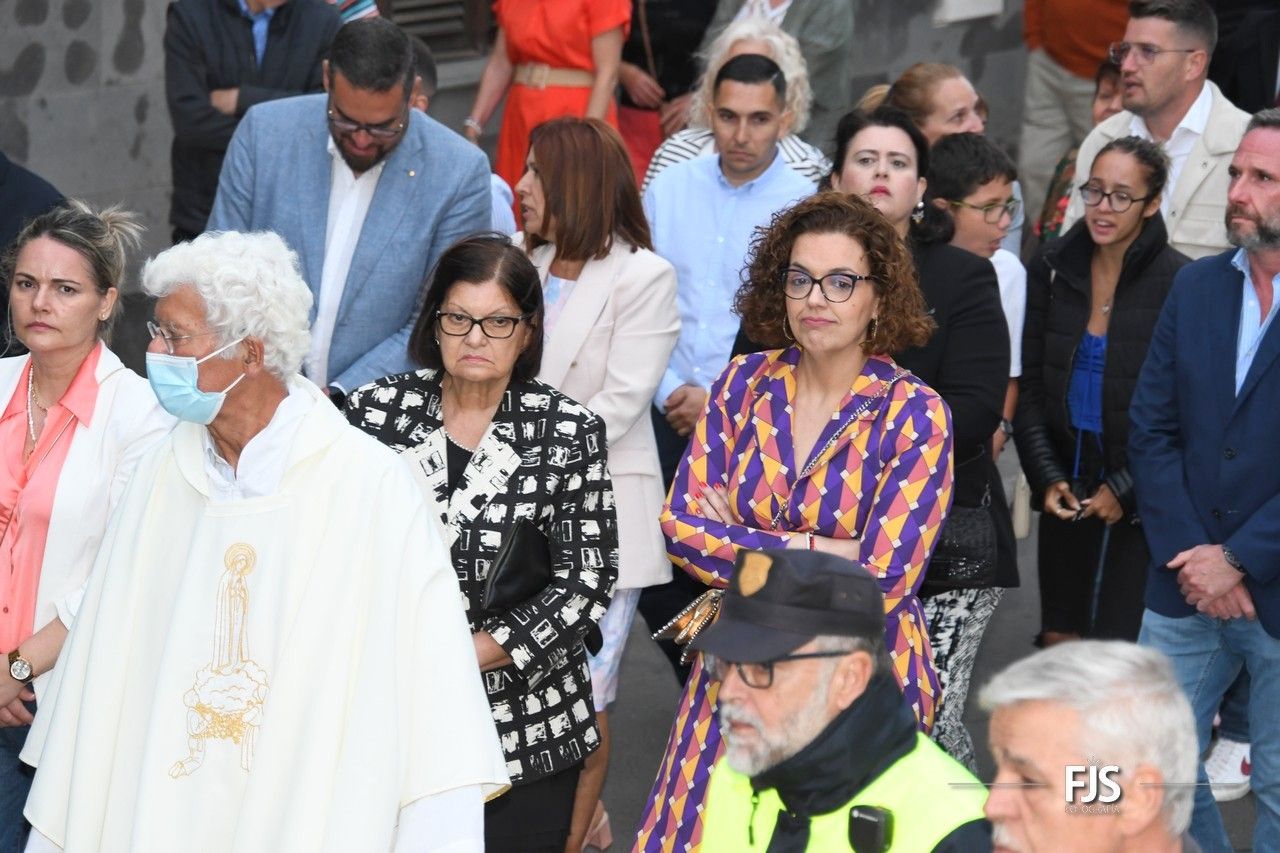 El desfile devocional de los tronos de la Virgen de Fátima y San Esteban recorrió las principales vías del núcleo de El Calero Bajo con el acompañamiento de un buen número de feligreses y de una amplia representación institucional encabezada por la alcaldesa Carmen Hernández.