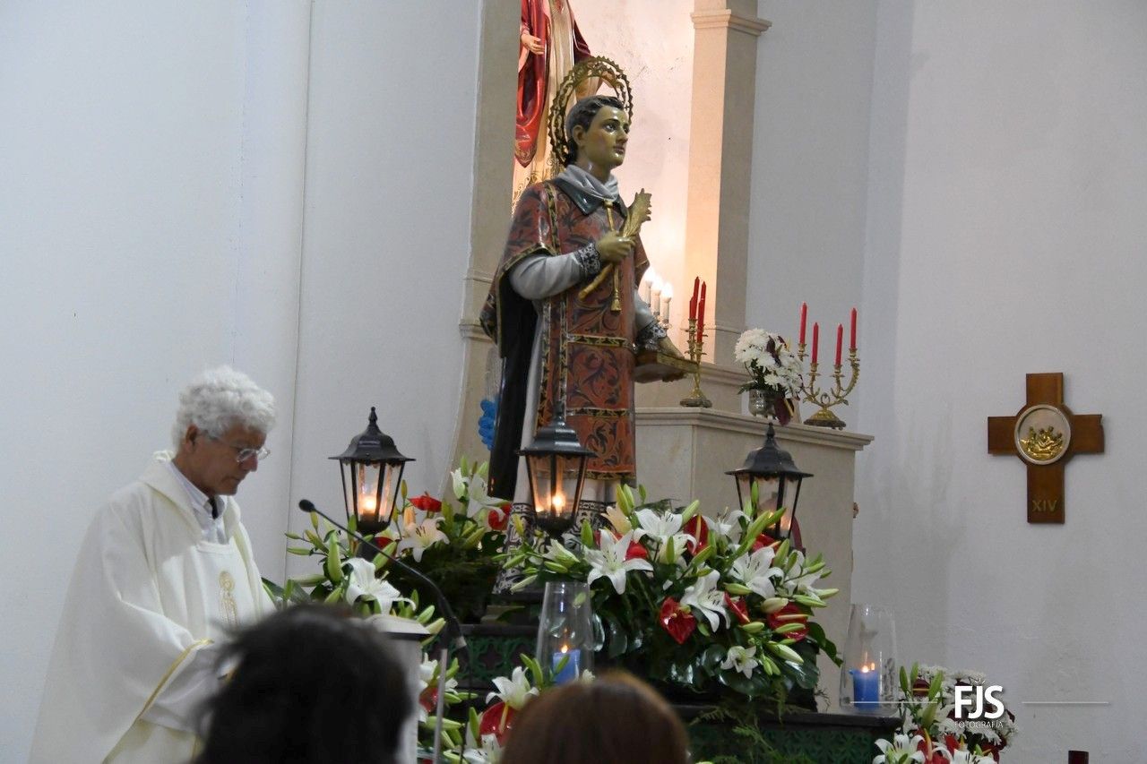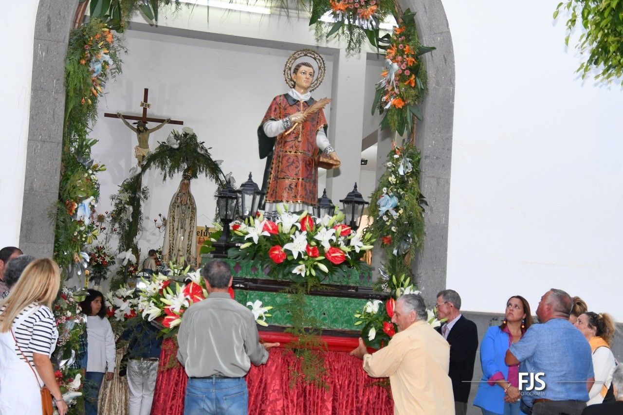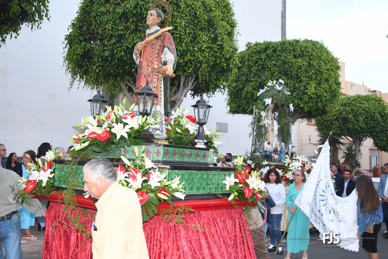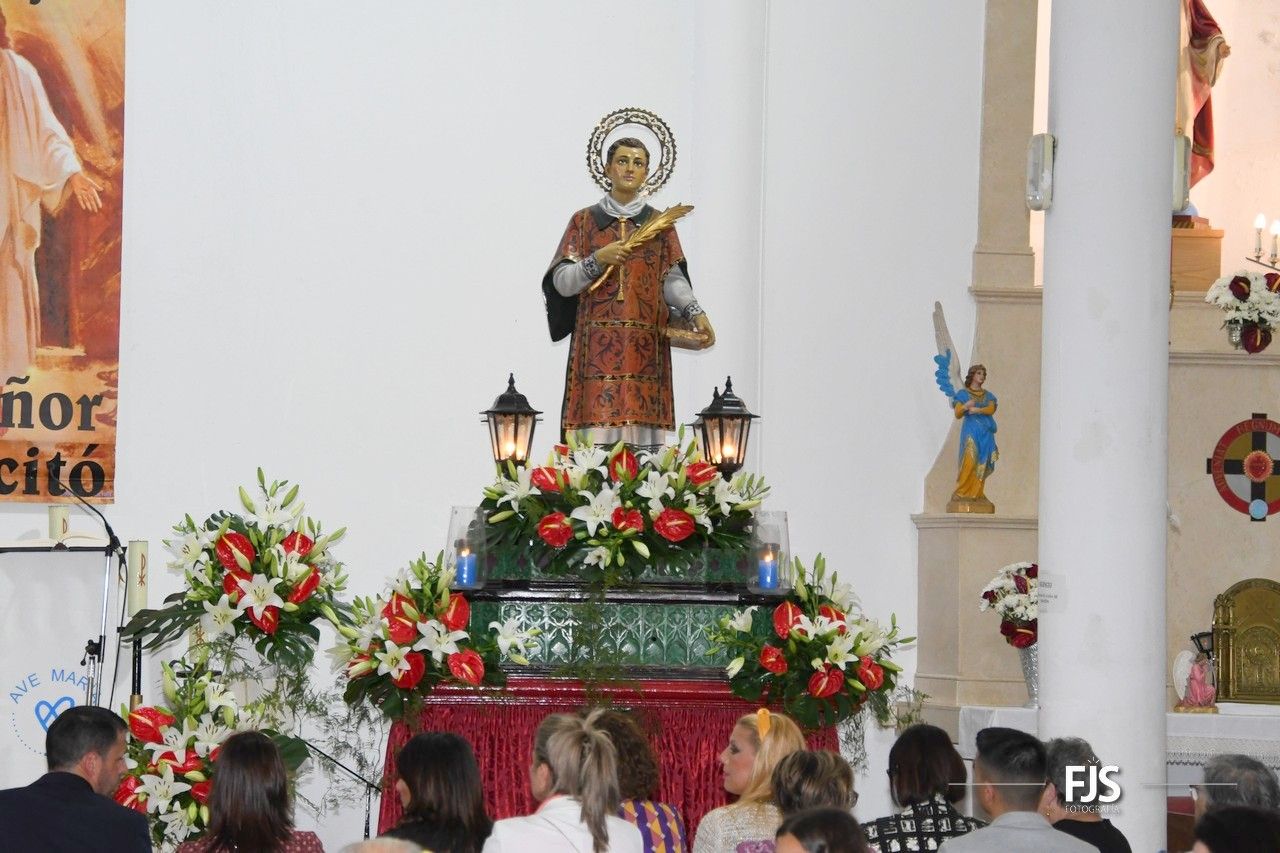 El desfile devocional de los tronos de la Virgen de Fátima y San Esteban recorrió las principales vías del núcleo de El Calero Bajo con el acompañamiento de un buen número de feligreses y de una amplia representación institucional encabezada por la alcaldesa Carmen Hernández.