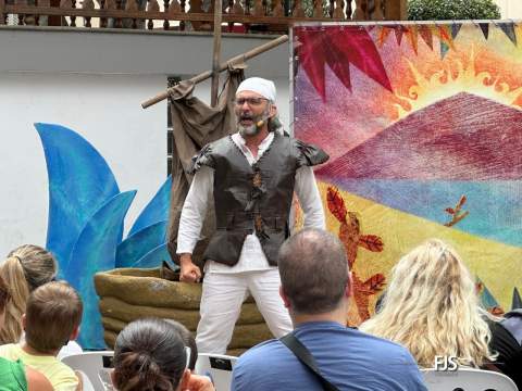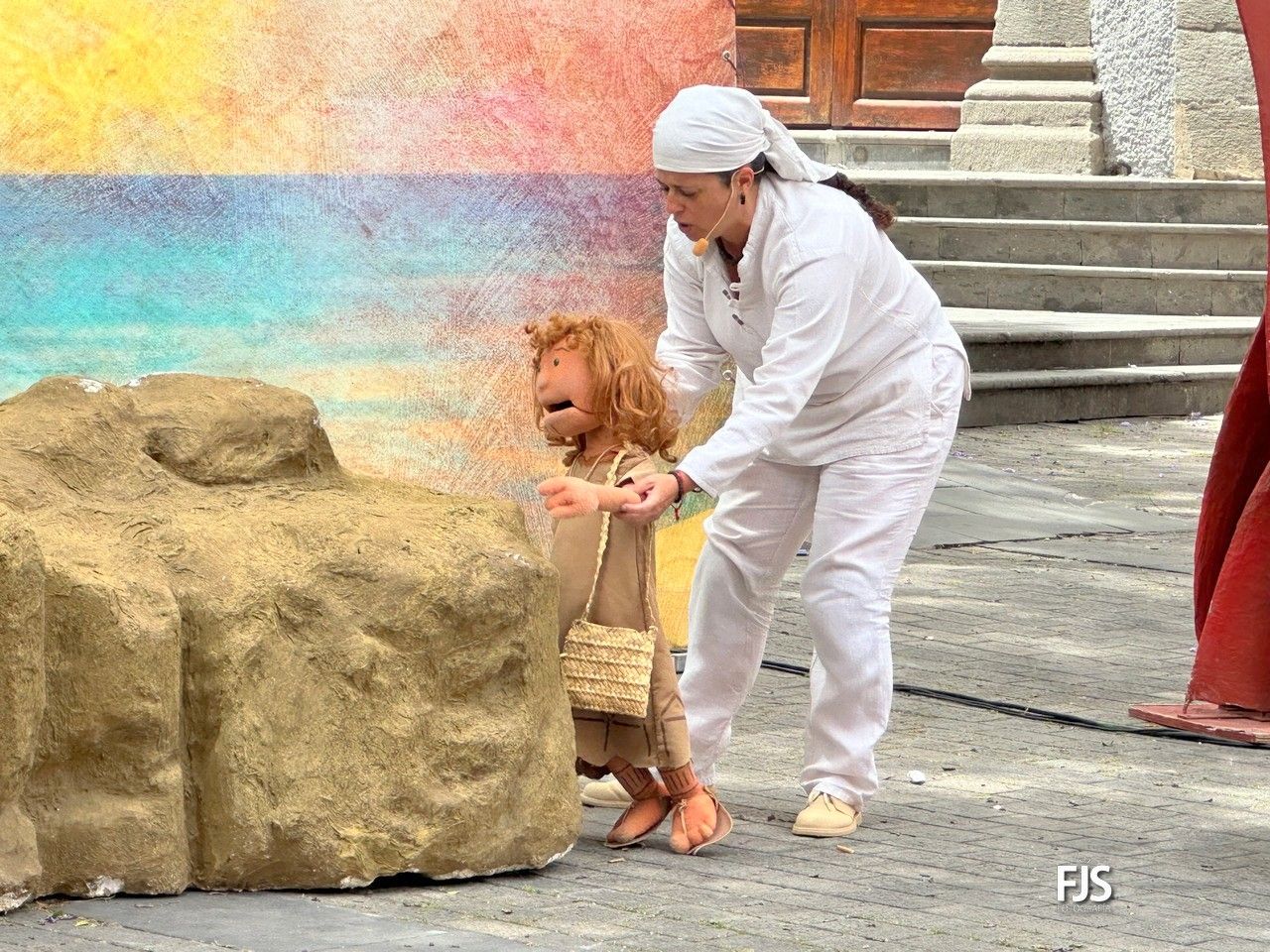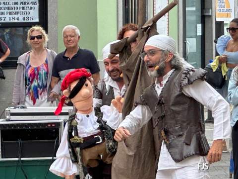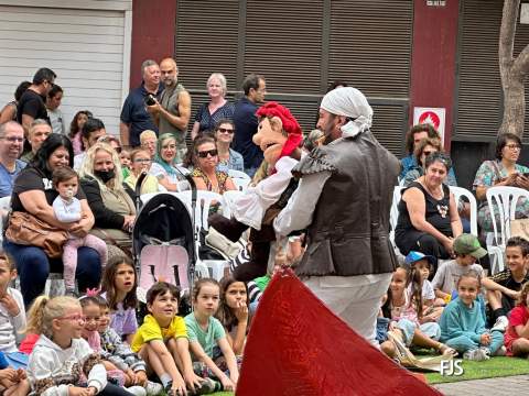 Arminda, la mascota y embajadora del Museo y Parque Arqueológico Cueva Pintada de Gáldar, promocionó este mediodía la cultura prehispánica canaria en un espectáculo de títeres que bajo el título Arminda y el ataque corsario tuvo lugar en la plaza de Los Llanos de Telde, organizada por la Concejalía de Cultura que tutela el edil centrista Juan Martel.