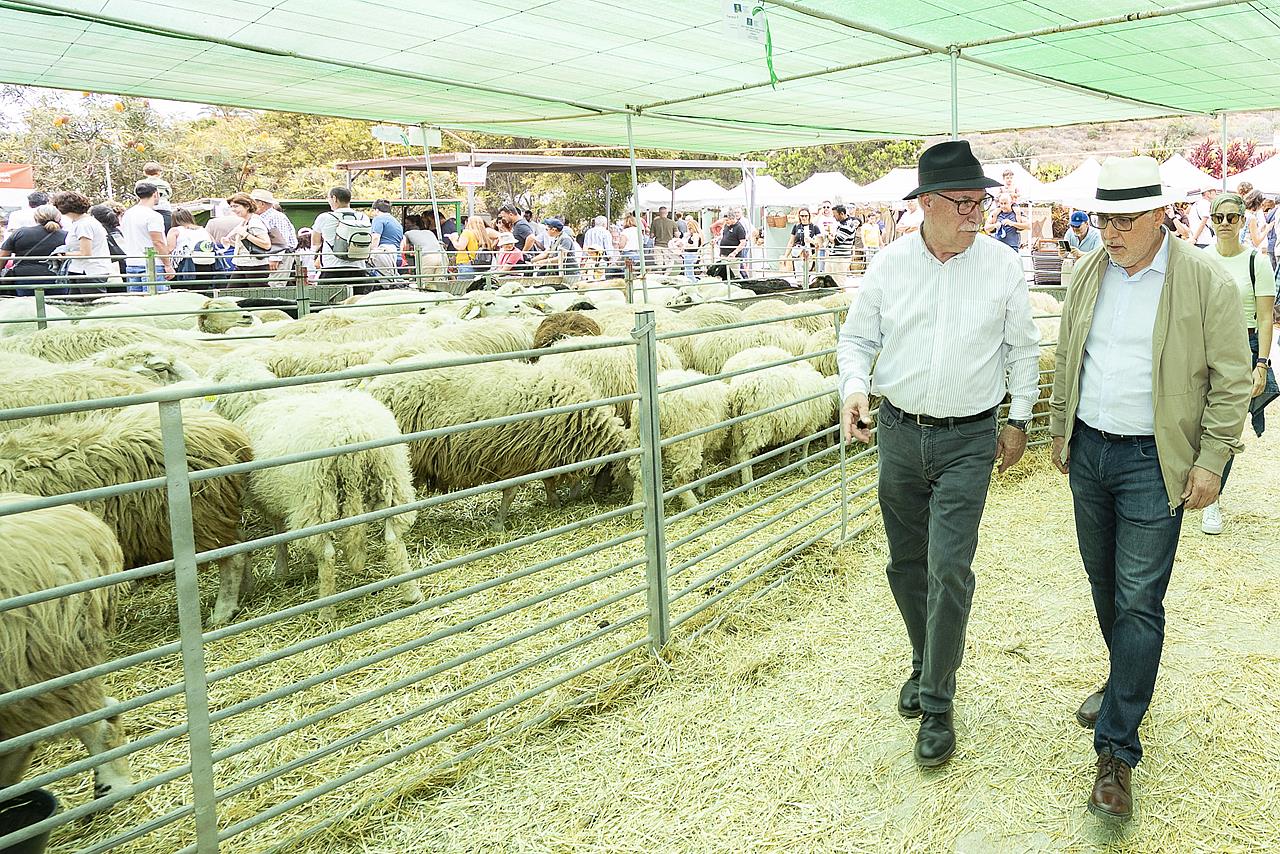 El presidente del Cabildo de Gran Canaria, Antonio Morales, junto al consejero de Sector Primario y Soberanía Alimentaria, visitaron los cien puestos de productos de la isla, así como participaron en la entrega de los premios de esta edición, destacando el esfuerzo de los ganaderos y agricultores de la isla, quienes tienen en el Cabildo un apoyo fundamental para mantener su actividad promocionar sus productos.