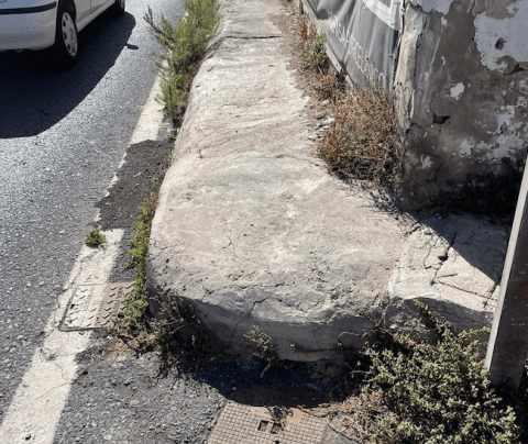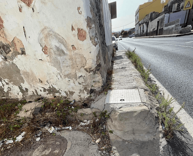 "Hemos pedido en reiteradas ocasiones ayuda, tanto al Cabildo como al propio Ayuntamiento de Telde, incluso presentando en el registro de ambas corporaciones una solicitud pidiendo alguna solución. Lo único que pedimos es que se contemple la posibilidad de colocar un badén unos metros antes del paso de cebra para que los vehículos reduzcan la velocidad. Y una acera en condiciones: lo que hay ahora no es adecuado ni para una persona en plenas facultades físicas, imagínense para personas con movilidad reducida", advierte Gloria Fernández.
