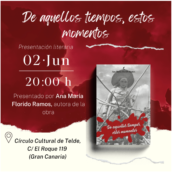 La teldense Ana María Florido presenta libro. La obra, que lleva por título De aquellos tiempos, estos momentos verá la luz en un acto que tendrá lugar en el Círculo Cultural de la ciudad el próximo día 2 de junio, a partir de las 20.00 horas.